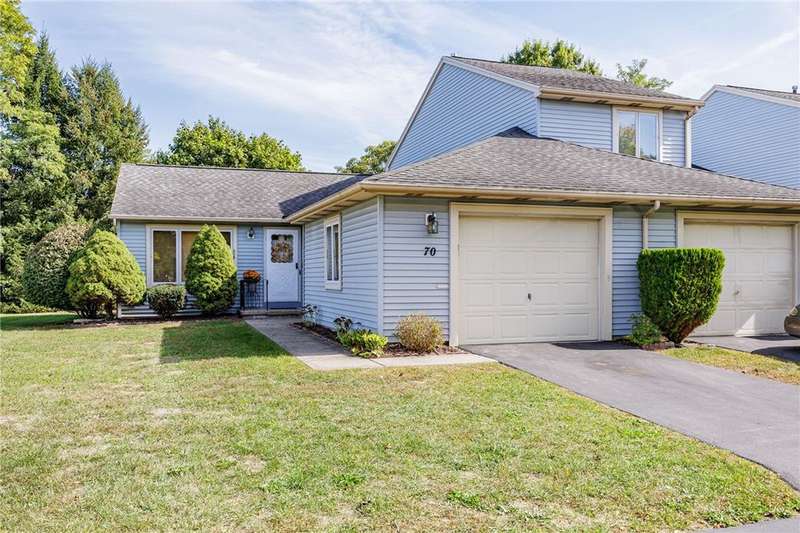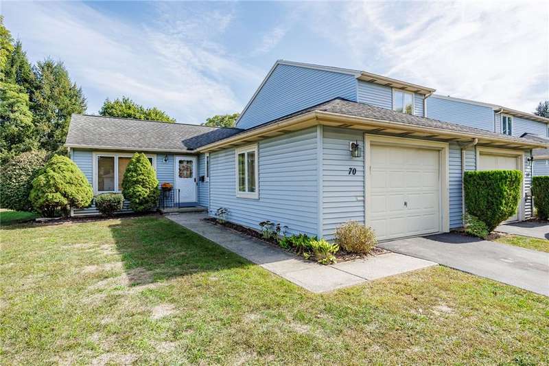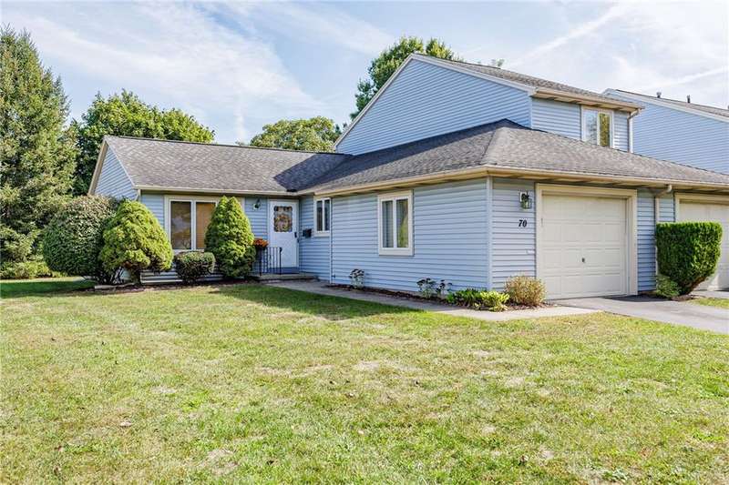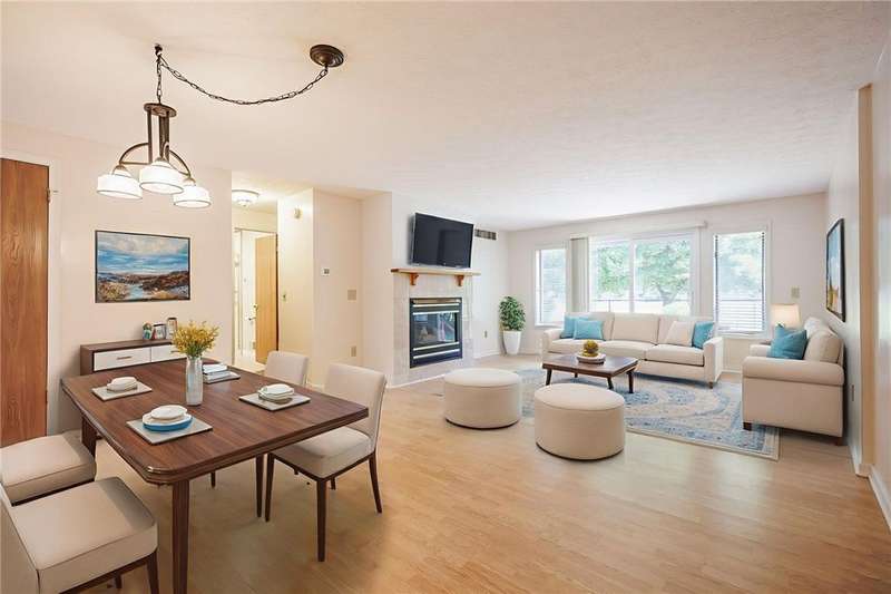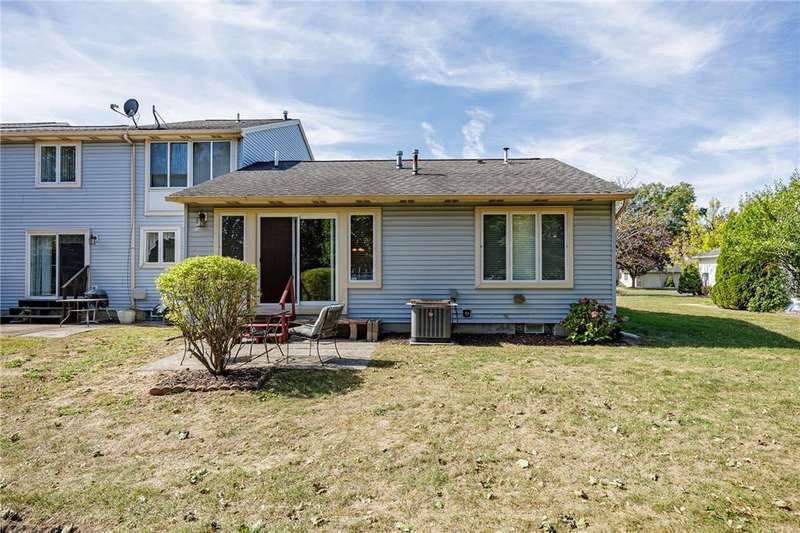 Desirable ranch-style end unit townhouse with an open floor plan! This well-maintained 2-bedroom home offers easy one-level living with first-floor laundry and all appliances included. Spacious living room features a gas fireplace and sliding glass doors leading to the relaxing patio and backyard. Well-appointed kitchen with stainless refrigerator (2023). The updated bath includes a low walk-in shower. New furnace with built-in humidifier and central air (2021). Additional highlights include on-demand hot water, central vacuum, updated electric panel, and attached garage with storage cabinets and automatic opener. Full, clean basement offers workshop space, glass block windows, toilet, and utility sink. HOA handles exterior maintenance, mowing and snow removal for worry-free living. Quiet and convenient location! * Delayed Negotiations - Offers Due Mon 10/13 at 11am *