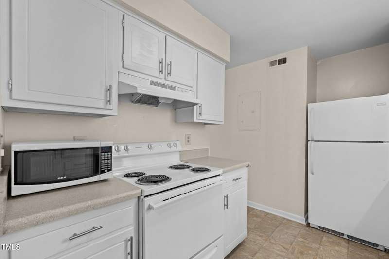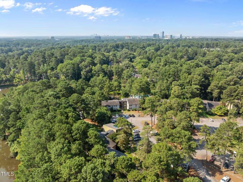 Main Level Cedar Hills Condo is located in an incredible Midtown Location near North Hills in North Raleigh. Keyless Entry accesses your Entry Foyer that opens to the Kitchen or Living Spaces, all with Smooth Ceilings. Mirrored Wall in the Dining Area. Large Family Room w/ Sliding Glass Door to a Covered Patio overlooking the Pond. Primary Bedroom features Double Closets and Private Half Bath. Guest Bedroom. Full Bathroom in the Hall w/ Washer & Dryer. Refrigerator, Microwave, Washer, Dryer all Convey! HOA covers Water, Sewer, & Trash.