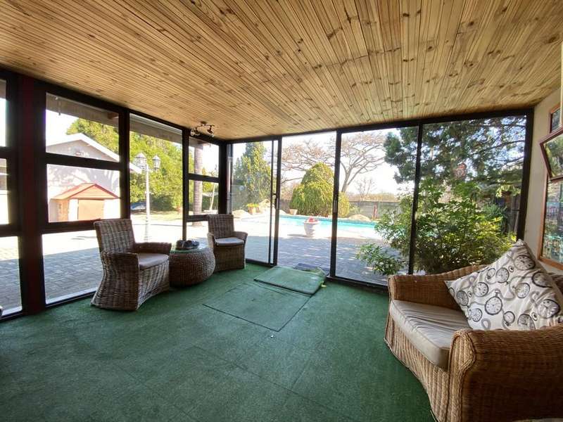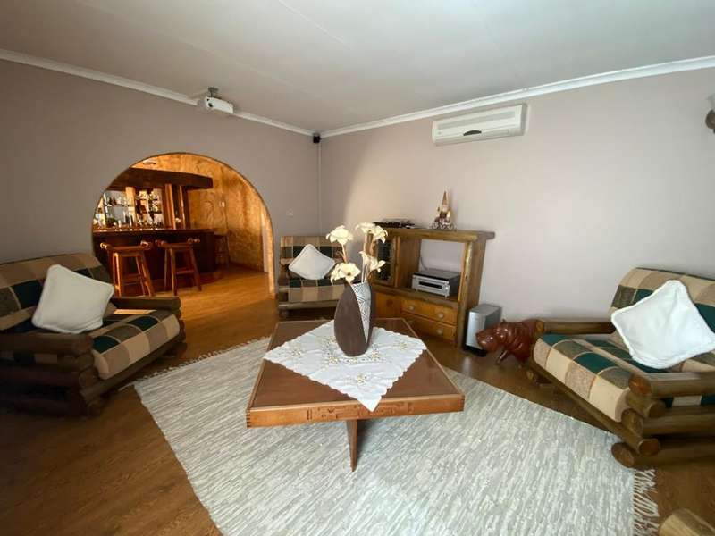 This beautiful family home, set in an upmarket area and quiet street, has a sparkling swimming pool and lapa with a built in braai to entertain during those hot summer months. This home boasts 3 bedrooms with built in cupboards and the main bedroom is airconditioned, has a walk in cupboard and en suite bathroom. The kitchen is also airconditioned and is fitted with a hob and double eye level oven. One of the two lounges has a mounted projector, is airconditioned and leads to the built in bar area just off the kitchen. A sun room leads out from the kitchen and overlooks the swimming pool and garden. The laundry has connections for all your appliances. The garage that fits 4 cars has automated garage doors, with space for a further 3 cars under the carport next to it. At the back of the garden there are staff quarters consisting of 1 room and a toilet. The well sized yard is fully fenced and has an electric gate. Chas Everitt International Property Group is one of the leading Estate Agencies in South Africa, promising professional service and dedicated to giving clients, property buyers, tenants, landlords and sellers a competitive advantage in the marketplace.