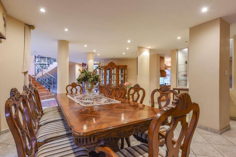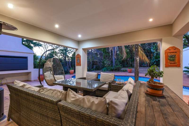 Luxury Estate Style 6/7Bedroom Residence ?Çô River Club, Sandton This sprawling spacious family home evokes the atmosphere of a private resort?Ǫserene, expansive, and timeless. It?ÇÖs a home that balances grandeur with comfort, equally suited to family life or lavish entertaining. Step through the front door?Ǫa gracious high ceiling foyer and sweeping grand staircase. You will feel like you have been transported to a retreat-like home with sweeping views to the sculptural pool and lush gardens. And just further on through the glass sliding doors an expansive view of the shapely glistening pool and lush gardens, setting the tone for refined living. Entertainment & Living Areas: ?Çó Formal and informal lounges, beautiful classic dining room area, library space. ?Çó Classic solid wood carved coffee bar/pub and flowing on from the one lounge area, a large recreational room for gaming, cinema, or pure entertainment and chilling out. All the reception rooms face toward the generous covered entertainment patio with BBQ area, perfect for summer gatherings overlooking the large pool and peaceful garden. Kitchen & Utility: ?Çó Granite topped impeccable gourmet kitchen with eat in breakfast area and serving counter. Plus gas hob. ?Çó Walk-in pantry, scullery, and laundry space. Lovely spacious secure staff accommodation and large backyard area. Additionally - 2 Solar Geysers. Accommodation: ?Çó MAIN HOUSE: Four large en-suite bedrooms upstairs, each with walk-in wardrobes. ?Çó Master suite with extra fabulous dressing room, luxurious full bathroom, and private balcony. ?Çó All additional upstairs bedrooms have shared balcony access. ?Çó Dedicated study/home office with built in shelving and excellent workstations. IN ADDITION! Adjoining the main house is an almost separate double-storey Cottage: Lounge, kitchenette, and multiple bathrooms and bedrooms. Ideal for extended family, yoga studio, independent living, or premium Airbnb. Features: ?Çó Equipped large home office and Versatile recreational room for games, fitness, or entertainment. ?Çó Secure staff quarters. ?Çó Four automated garages plus secure visitors parking. The Feel ?Çó A residence that captures the glamour of a Spanish villa or Thai retreat. ?Çó Refined, enduring finishes - real wood, stone, and craftsmanship that stand the test of time. ?Çó Perfect for multi-generational living or those who love to host in style. ?Çó Classy, classic, discreet, and elegant ?Ǫ a true ?Ç£old money?Ç¥ home.