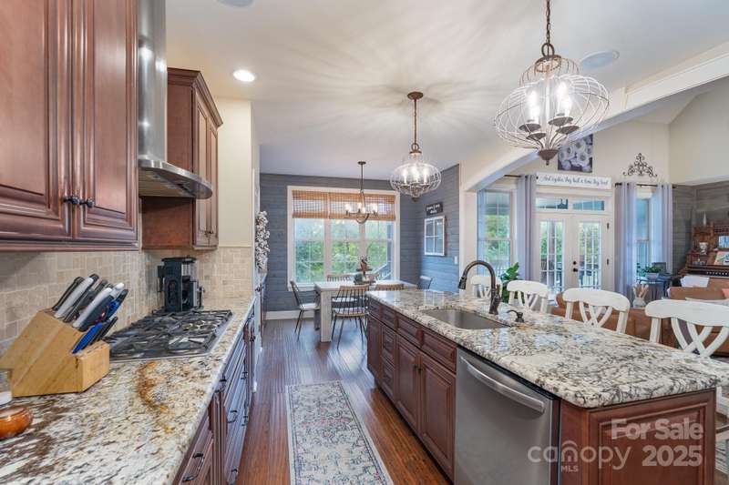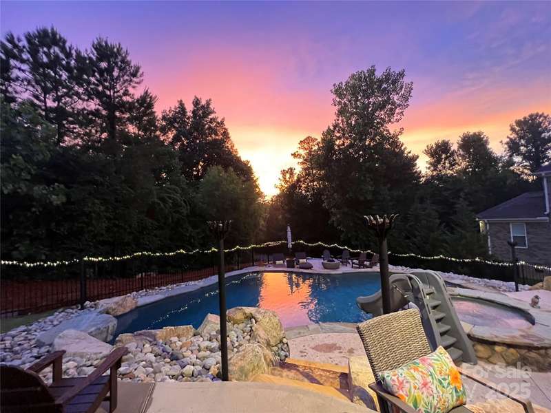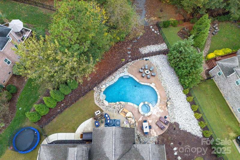 This showstopper is sure to impress you from the moment you step on the property! From the front entrance to the backyard oasis, this one is filled with upgrades. The main level features beautiful bamboo flooring, bringing consistency and warmth throughout. A two-story family room with fireplace is the perfect entertaining spot, especially with the openness to the kitchen. The chef will enjoy the time spent preparing meals with gas cooktop, wall oven, stainless appliances, granite, spacious island with seating, and breakfast area. The separate dining room will serve you well for both formal and informal meals. The main level primary suite features a large bedroom and recently upgraded private bath. Featuring separate vanities, a gorgeous soaking tub, new tile shower, and wood accents, the primary bath will captivate your time as you will never want to leave this private spa-like setting. A second bedroom and full bath are on the main level as well. Upstairs is home to three additional bedrooms, a bonus room, and full bath. Enjoy your mornings on the screened porch overlooking the highlight of the backyard - your private "resort living" with gorgeous gunite saltwater pool, hot tub, stone fireplace, and firepit! You will be the envy of the neighborhood and outdoor entertaining will leave your guests speechless. An attached double garage will serve you well, especially on those cold or rainy mornings! All of this - and located on a cul-de-sac along the 18th fairway at Waterford Golf Club. Make your appointment today to check out 703 Waterford Glen Way, then head out to start packing!