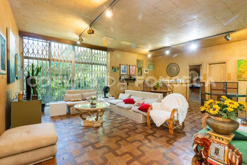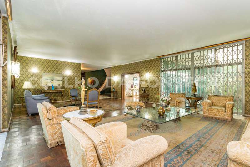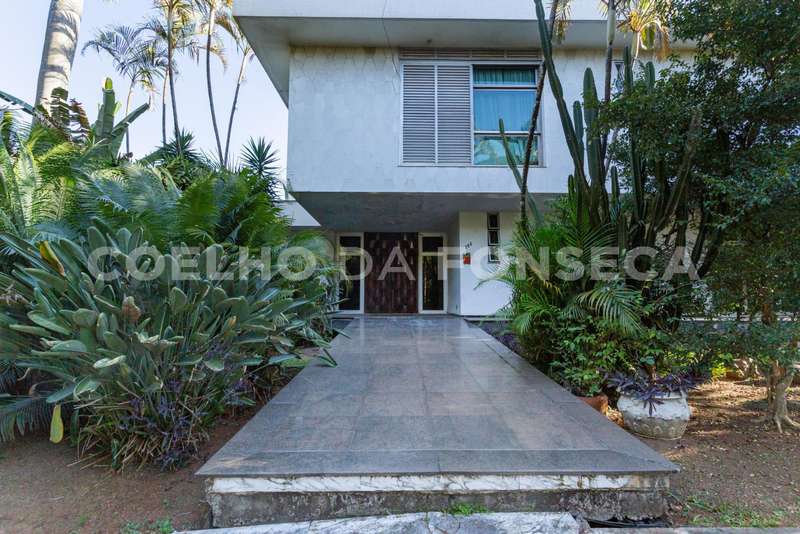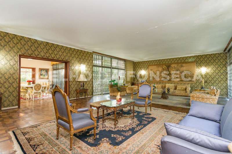 Jardim imenso! Pode ser para uso comercial ou residencial. A casa possui 730,00 ² de área útil. No térreo possui quatro enormes salas : almoço, jantar, e duas salas de estar. As duas salas de estar e a de jantar com saída para o belíssimo jardim. No térreo ainda temos a copa/cozinha, biblioteca, dois lavabos,depósito e grande hall de entrada com escadaria escultural, para o piso superior. No andar de cima,
