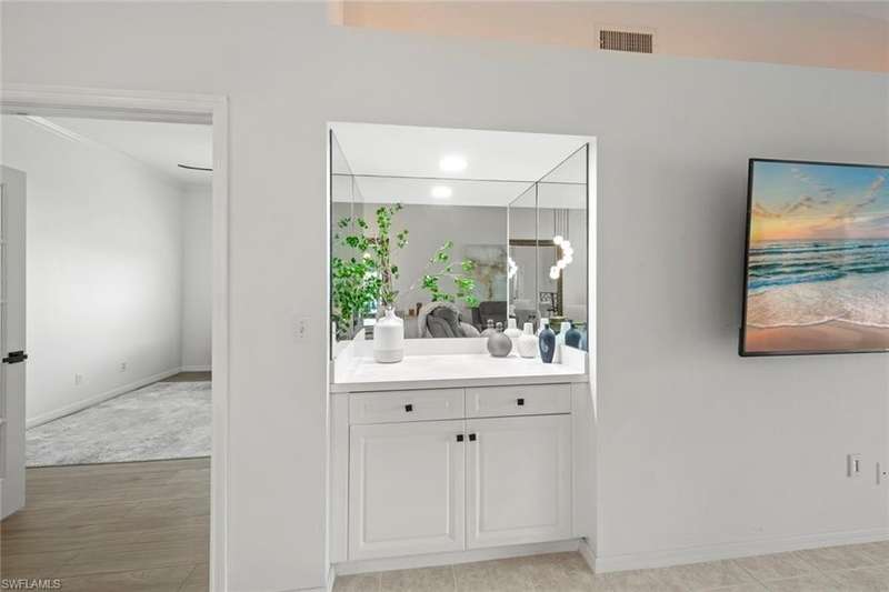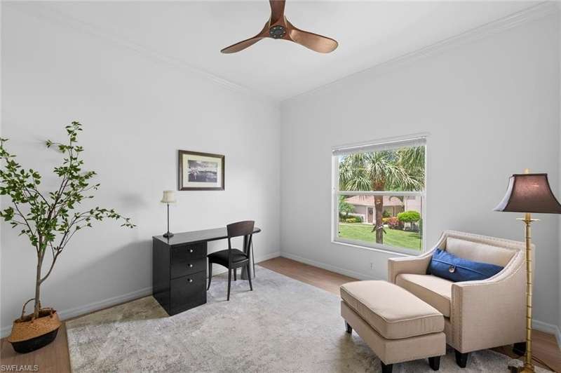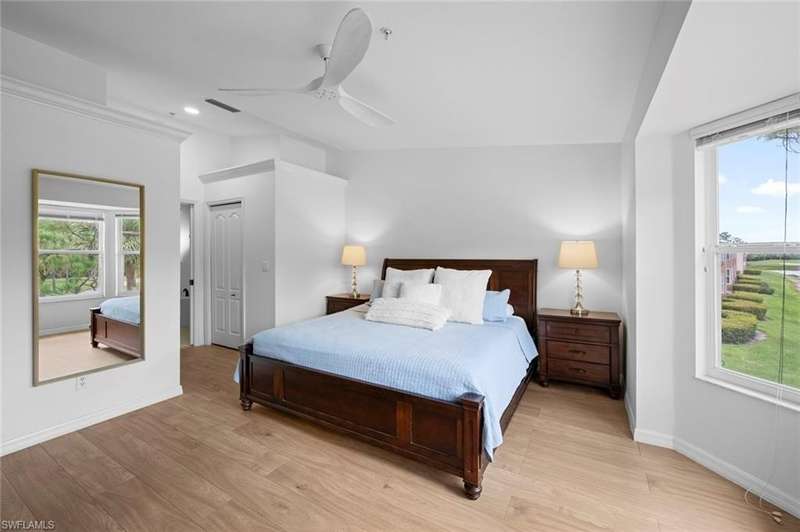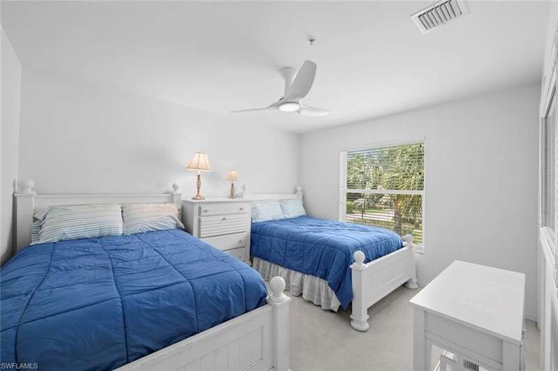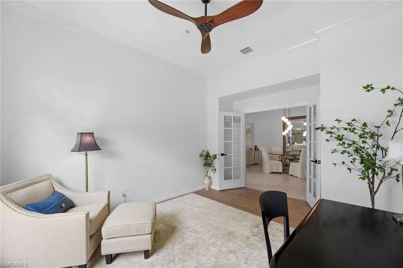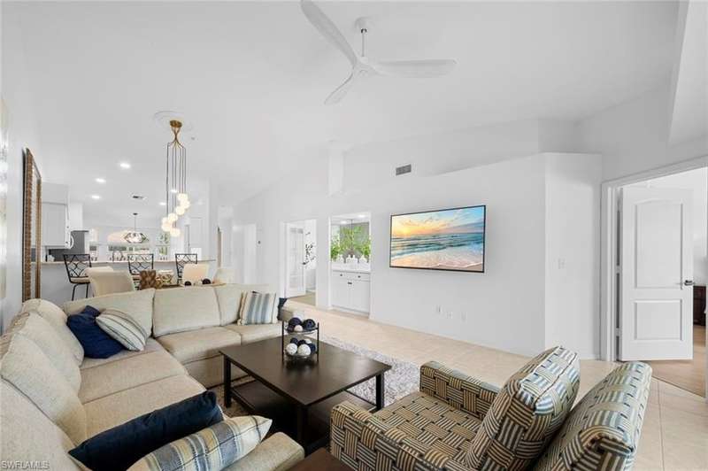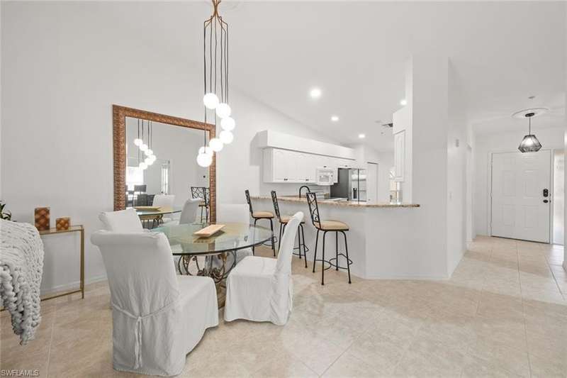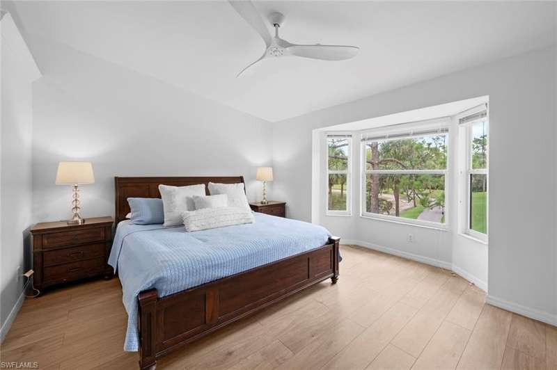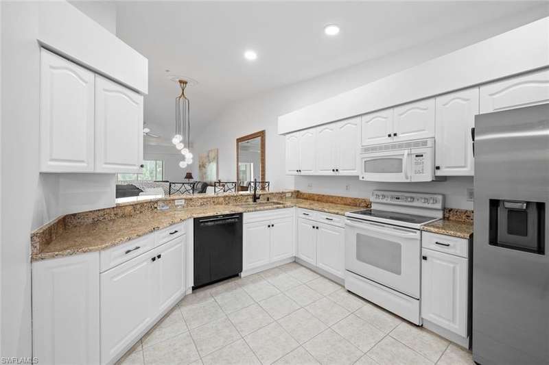 Welcome to this charming two-bedroom, two-bathroom plus a den St. Andrews Veranda, nestled in the scenic bundled golf community of Highland Woods. Bathed in natural light and featuring a spacious, open floor plan, this home is ideal as either a primary residence or a vacation getaway. Enjoy breathtaking views of the golf course and lake, complemented by thoughtful updates such as high-end designer finishes, granite countertops, and stylish tile flooring. With a newer A/C and water heater for added comfort, the enclosed lanai offers a peaceful retreat to soak in the year-round vistas. Vaulted ceilings amplify the sense of openness, making the space feel even more airy and expansive. Highland Woods boasts top-tier amenities, including an 18-hole championship golf course, three bocce courts, four tennis courts, a large community pool with cabana, a state-of-the-art fitness center, and a beautiful clubhouse. The Grille provides sweeping views of the 18th green, offering a perfect spot to relax with friends and enjoy a meal or drink. Located in sunny Southwest Florida, you’re just a short drive from the Promenade of Bonita Springs, Coconut Point Mall, the Shops at Mercato, and the stunning Gulf of America. This property seamlessly combines luxury, comfort, and an unbeatable location for a truly relaxed, upscale lifestyle.