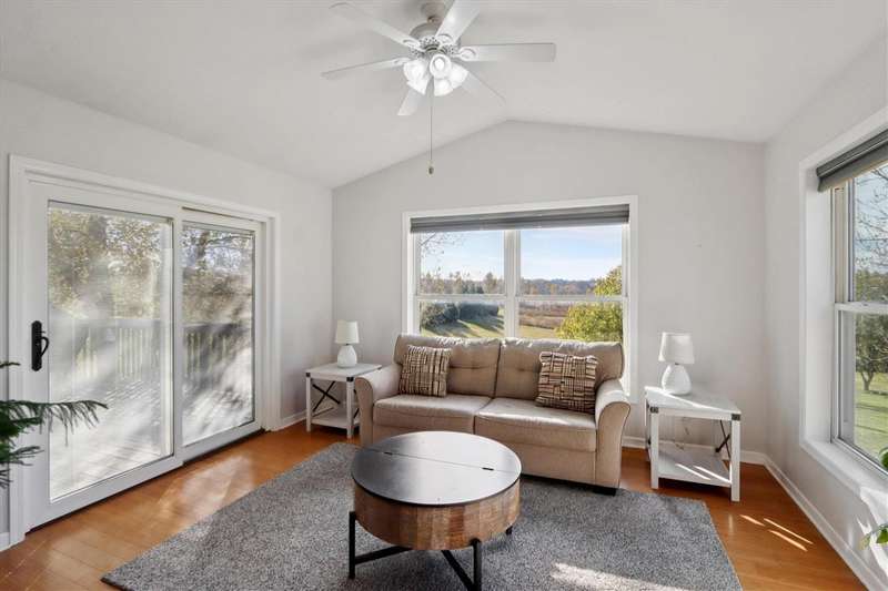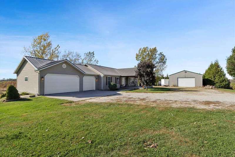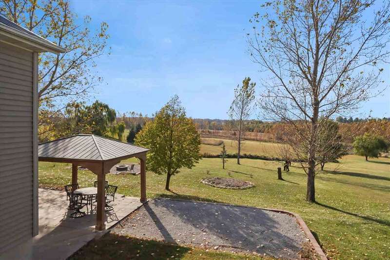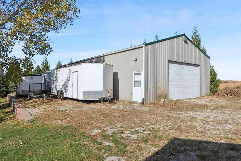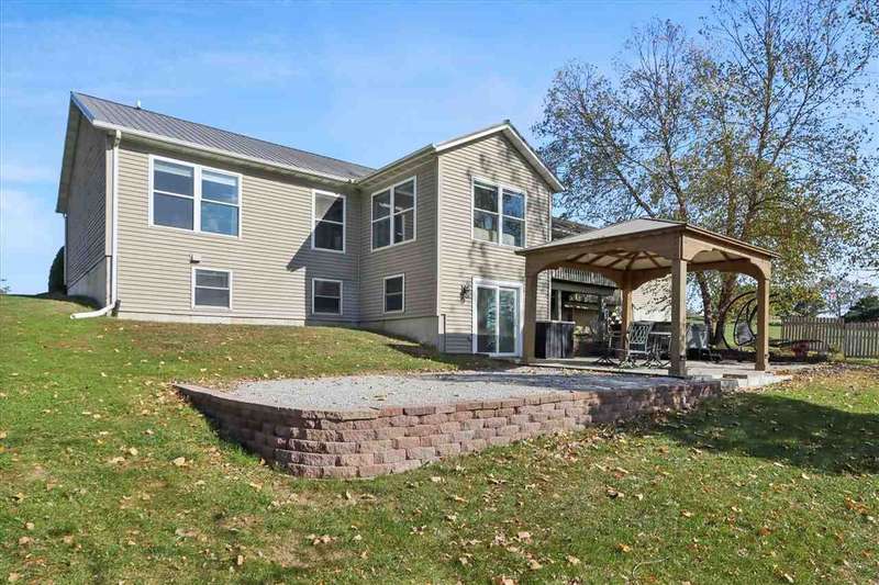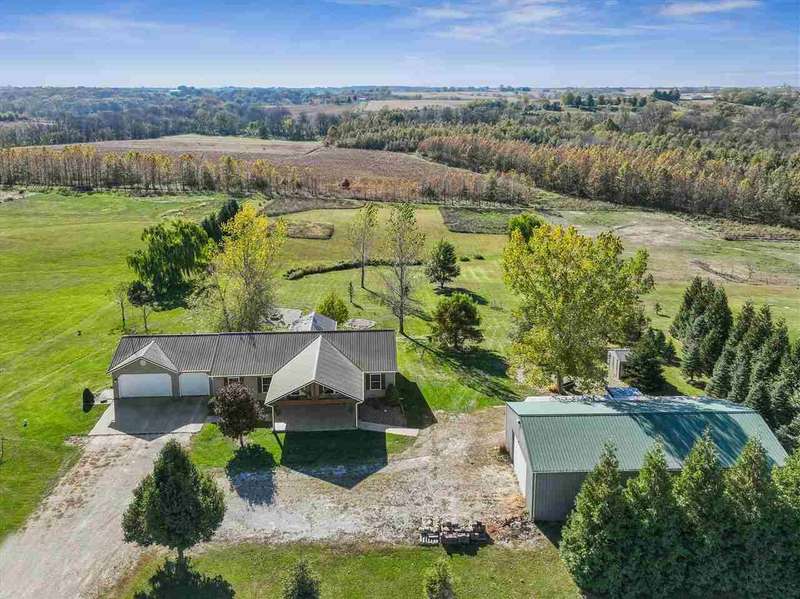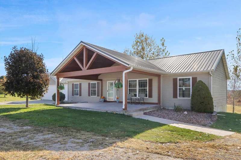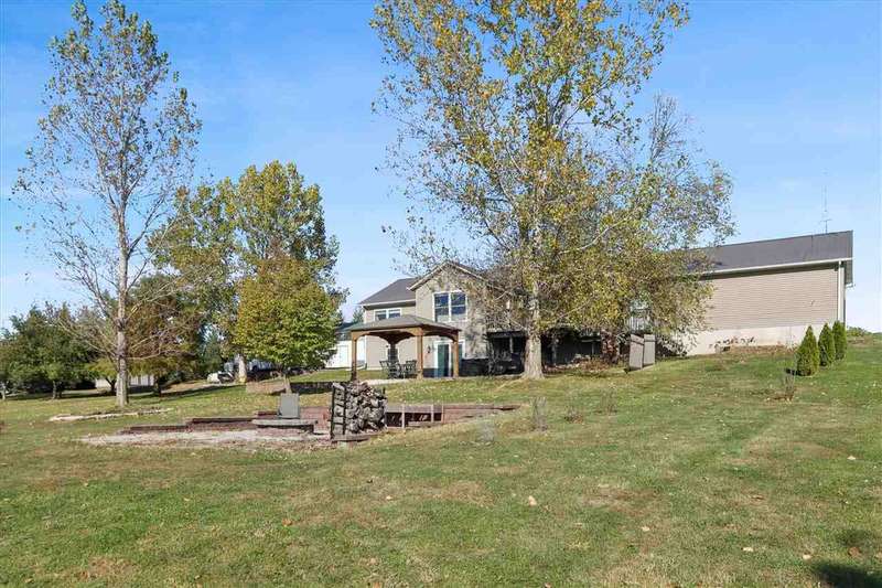 This house is perfect for holiday gatherings. Located on 3.90 acres, this inviting ranch offers tranquil country living with beautiful views and plenty of space to start your own hobby farm. Upstairs you'll find three bedrooms, two bathrooms, a convenient laundry area near the garage, a spacious kitchen ideal for baking, and a cozy four seasons room that looks out over the large backyard. The freshly remodeled lower-level features two bedrooms, a family room with a fireplace, a full bathroom, a small kitchenette, and ample storage. Step outside to a big patio beneath a charming pergola, providing a wonderful spot for entertaining guests. In addition to an attached three-car garage, there's a large 30 x 60 shop for all your farming equipment or hobbies, plus a handy garden shed. Recent updates include a new roof in 2020 and recently installed gutter guards. Twenty-minute drive to Iowa City. Don't miss out on this opportunity!