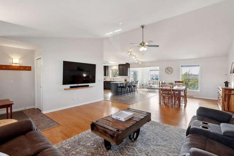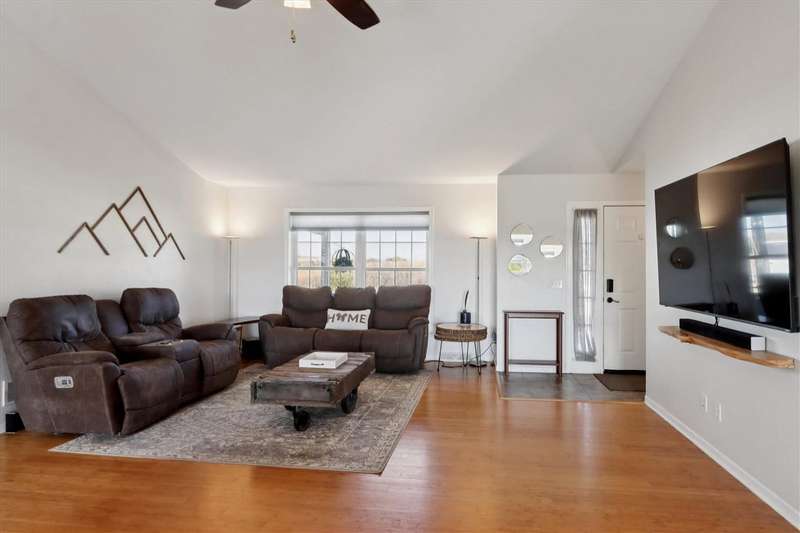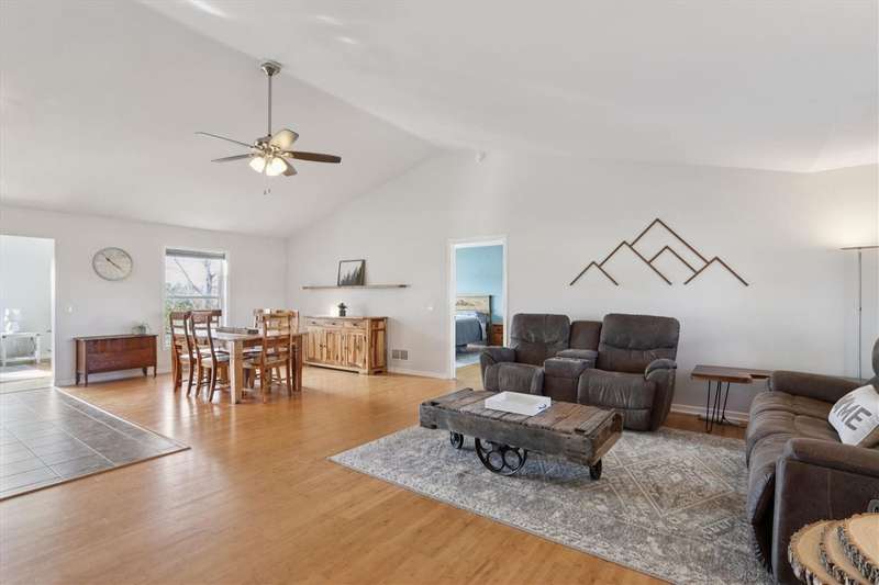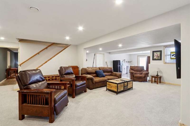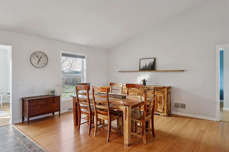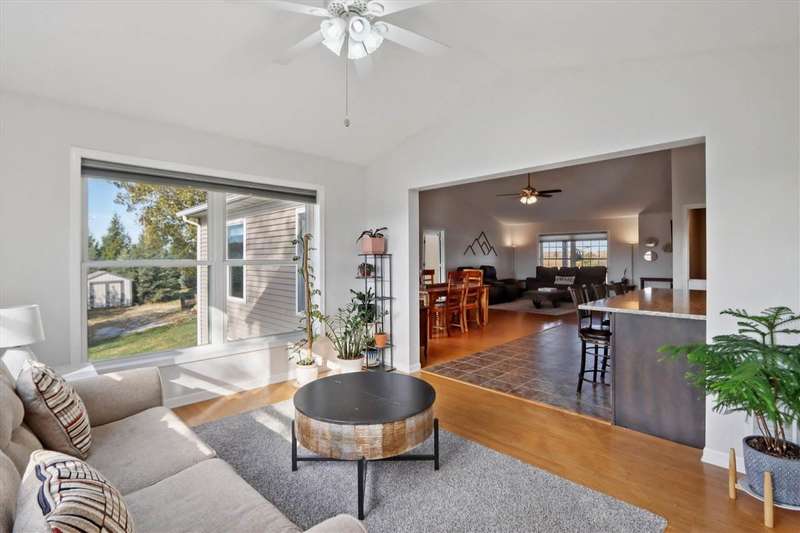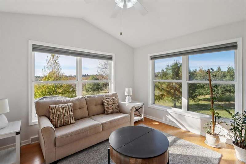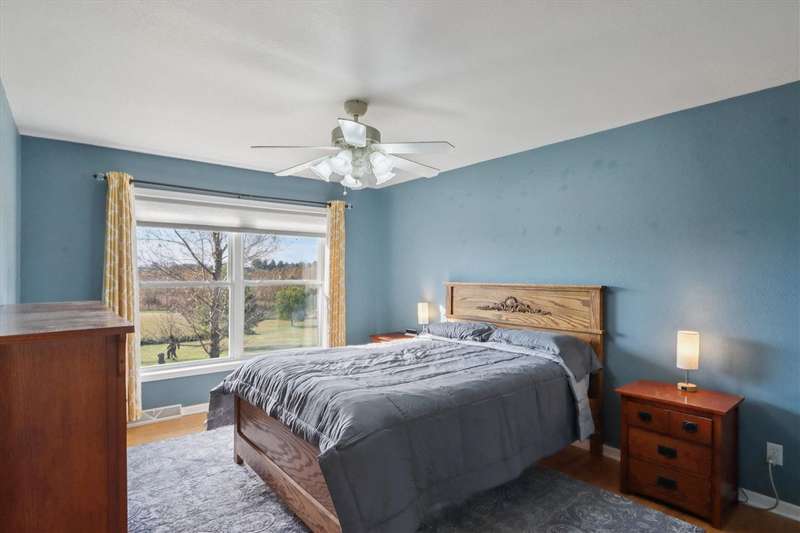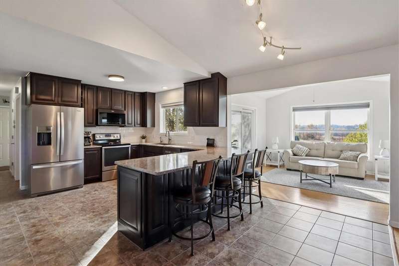 This house is perfect for holiday gatherings. Located on 3.90 acres, this inviting ranch offers tranquil country living with beautiful views and plenty of space to start your own hobby farm. Upstairs you'll find three bedrooms, two bathrooms, a convenient laundry area near the garage, a spacious kitchen ideal for baking, and a cozy four seasons room that looks out over the large backyard. The freshly remodeled lower-level features two bedrooms, a family room with a fireplace, a full bathroom, a small kitchenette, and ample storage. Step outside to a big patio beneath a charming pergola, providing a wonderful spot for entertaining guests. In addition to an attached three-car garage, there's a large 30 x 60 shop for all your farming equipment or hobbies, plus a handy garden shed. Recent updates include a new roof in 2020 and recently installed gutter guards. Twenty-minute drive to Iowa City. Don't miss out on this opportunity!