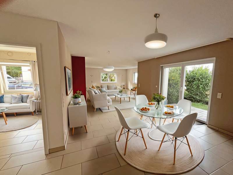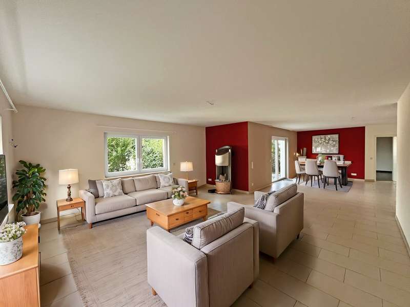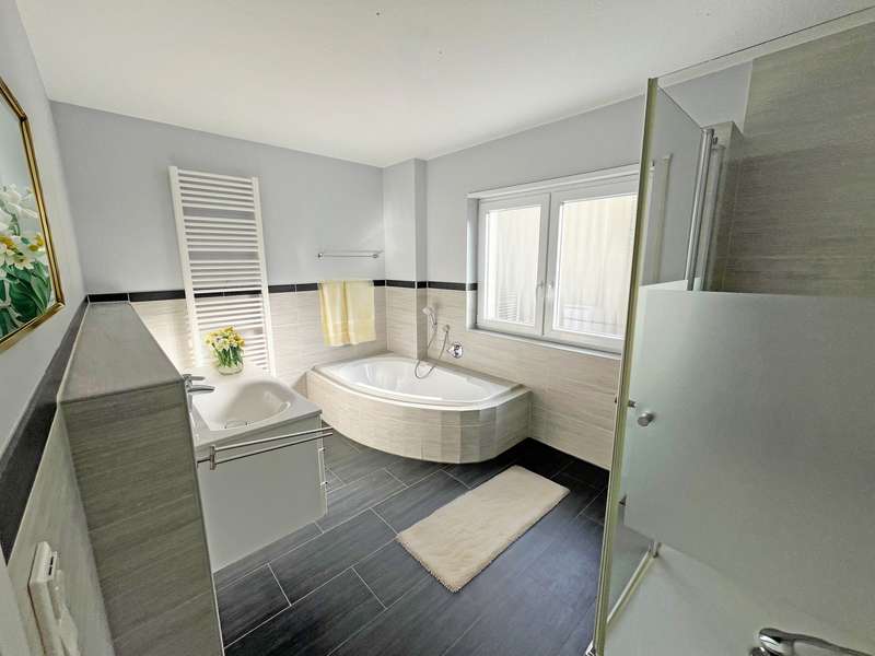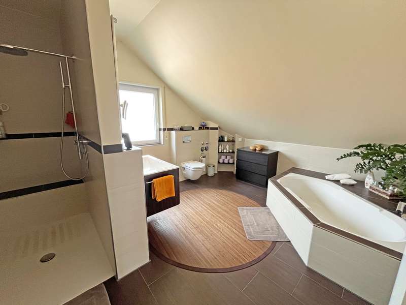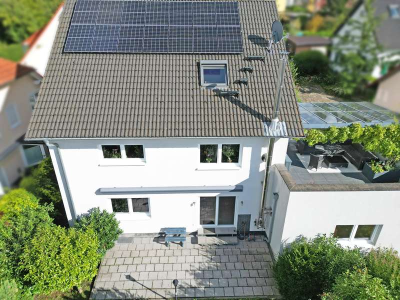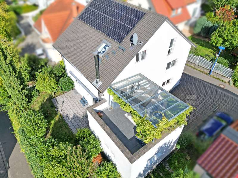 For sale is an exclusive two-family house in a sought-after panoramic location in Weinheim-Lützelsachsen. This high-quality property was built in 2009 in a south-west facing hillside location and impresses with its well thought-out design. The surrounding area is characterized by spacious detached houses in a preferred residential area of Weinheim. This energy-efficient class A house offers you the perfect combination of modern living, sustainability and luxury. Thanks to the innovative air/water heat pump, which will be newly installed in November 2024, and a photovoltaic system (10 kWp) from 2023, you will benefit from extremely low energy costs and an environmentally friendly energy concept. The house has been designed to meet the highest standards of energy efficiency and living comfort - a sustainable home for the future. The underfloor heating throughout the building ensures a pleasant room temperature and cozy warmth. With a total living space of approx. 295 m², the house extends over three floors, plus additional usable space in the basement. There is a spacious double garage with direct access to the house, the boiler room, a laundry room and various storage rooms, as well as a heated hobby room. The first residential unit of the house is located on the first floor. This has an entrance area, a guest WC, a bathroom with bathtub and barrier-free shower, a kitchen and a separate storage room, as well as a bedroom and a study. The spacious and light-flooded living and dining area has a centrally positioned fireplace and provides a cozy warmth and atmosphere, especially in winter. This area provides access to the terrace and garden. The upper floor and attic form the second living area with a total of four bedrooms and two bathrooms. The upper floor comprises a bathroom with a built-in sauna from 2022, a spacious living and dining area with a fireplace and an open kitchen, as well as a further bedroom, guest room or study. From the partially covered south-west-facing terrace, which is accessible from the living and dining area, you can enjoy both the evening sun and an unobstructed distant view of the Rhine plain. The top floor comprises a work area, a bedroom, a dressing area and a bathroom with a barrier-free shower and bathtub. This property combines innovative technology with a stylish living ambience and offers you the opportunity to live in a sustainably designed home that is both environmentally friendly and future-proof. Experience the luxury of a modern home that not only offers you maximum living comfort, but also minimizes your ecological footprint!