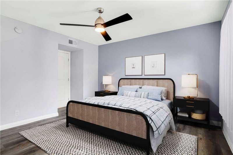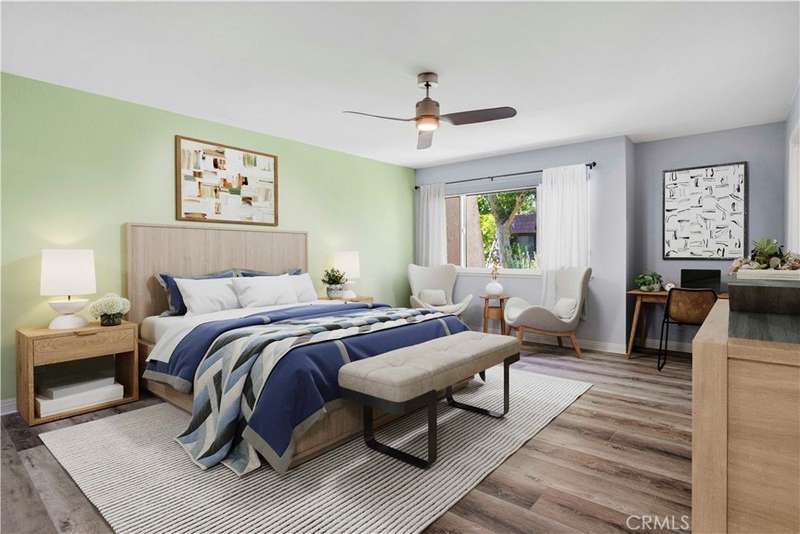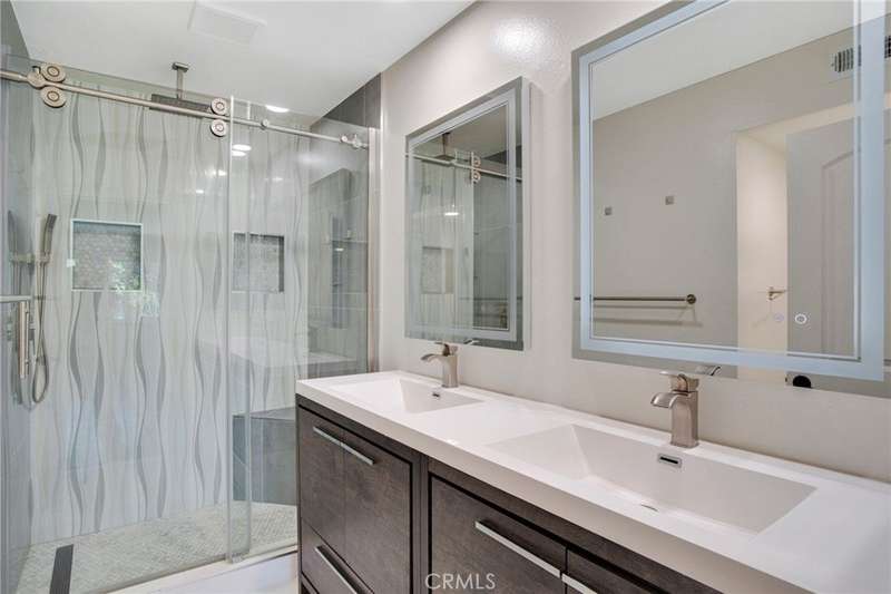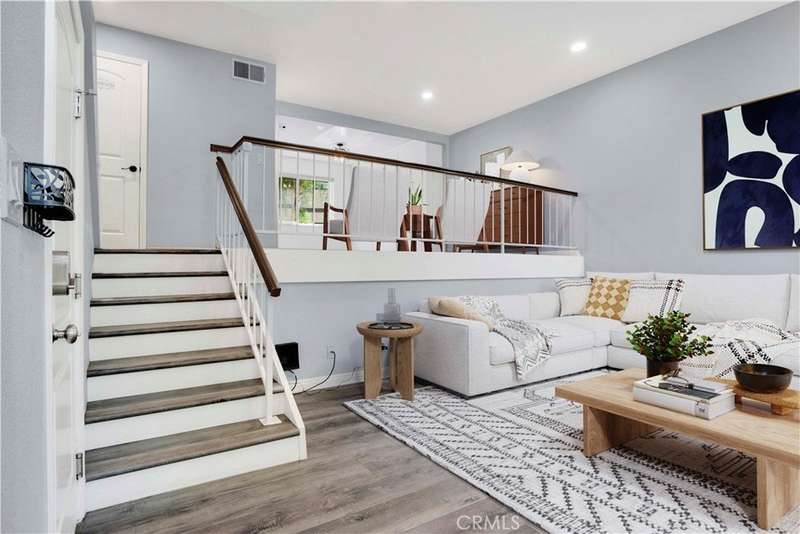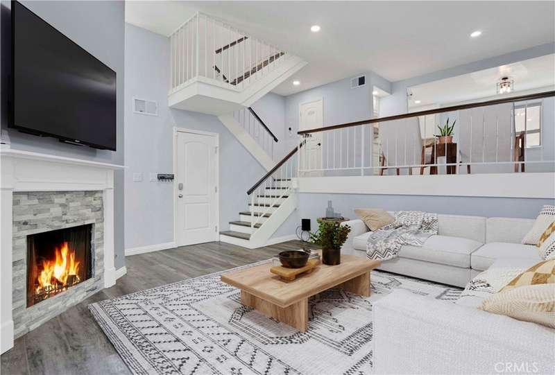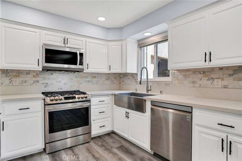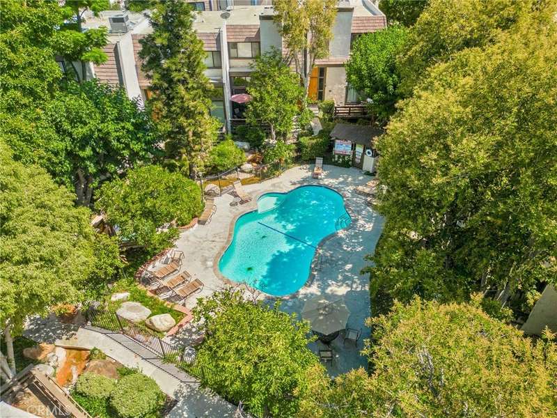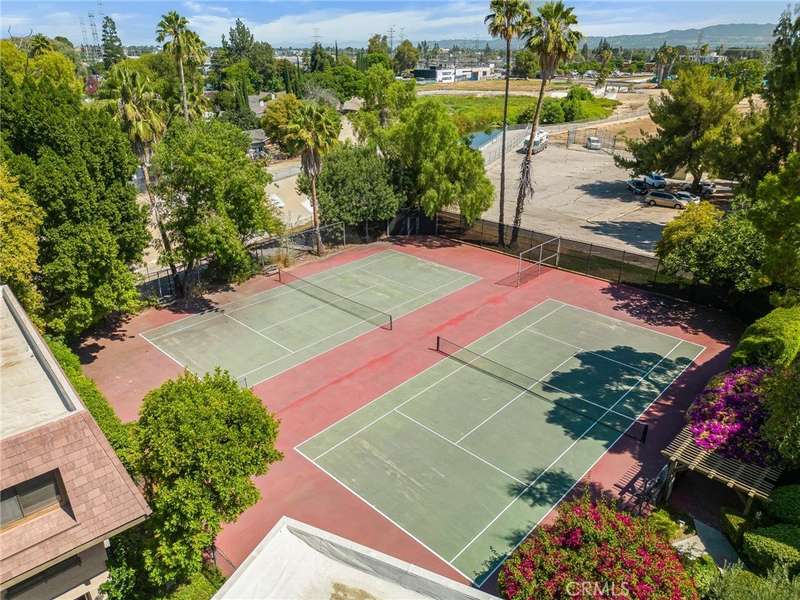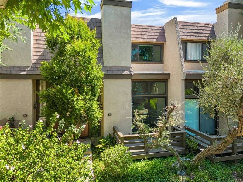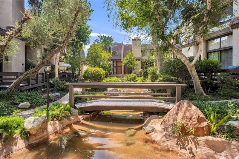 LOCATION, LOCATION LOCATION! Welcome to this gorgeously remodeled Northbrook townhome! The unit boasts 2 large suites, 3 baths, private 2 car garage, and is tucked deep within the complex, entering through the treelined walkways, alongside the flowing water feature. This light & bright tri-level home has an open floorplan with vaulted ceilings & clerestory windows that bring in natural light throughout the day. Stylish combinations of modern elegance from the chic chandelier in the 2 story entry; to the sleek stainless steel appliances, quartz countertops & marble subway backsplash in the kitchen; with classic backdrops of paint color throughout the home to compliment any design. Modern features include: smooth ceilings, recessed lighting, custom zebra blinds & luxury vinyl plank flooring throughout. Upgrades include: brand new dual pane windows & whole-house water filtration system. The spacious lower level living room has a corner fireplace with stone tile & wood mantle. Enjoy coffee, drinks or entertaining on the lush patio-- which sits above the green space path & shaded by surrounding trees. The upper living-dining room & kitchen level has a built in coffee/bar with sink & additional built-ins in the dining area offer abundant storage options. This flex space level is large enough to have an extra sitting area, which makes it great for entertaining. The huge primary suite has a treetop view, accent wall, desk niche, modern ceiling fan/light, an extra large closet & a secondary closet. The spa-inspired primary ensuite features dual vanities, glass enclosed rainfall shower & handheld fixtures, high end tile finishes with corner bench seat, & brushed nickel hardware. The guest suite has large closet & a full size ensuite. This secondary bath features classic subway tile surround, waterfall & handheld fixtures, modern vanity & lighting with brushed nickel hardware. Enjoy resort-style amenities, including a sparkling pool, garden jacuzzi, tennis courts, meandering water features, guest parking. Northbrook's HOA covers 24 hour Security, water, sewer, earthquake insurance; other mentionable items: earthquake retrofit done in 2020 & a new roof done in 2023. Located in the heart of Northridge-- easy freeway access for commuters; minutes from Porter Ranch, CSUN, Northridge Fashion Center, Porto's Bakery, Costco & MORE! Great opportunity to own this townhome; it feels more like a home in a nice neighborhood-like community. Schedule your private showing today!
