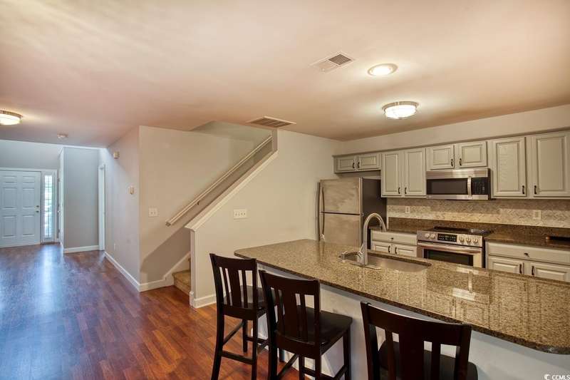Welcome home to true Southern charm in the heart of Murrells Inlet’s International Club. This beautifully maintained residence features an open-concept floor plan with 3 bedrooms and 3.5 bathrooms. One bedroom with a full bath and a half bath are located on the first floor, while upstairs you'll find the primary suite with a full bath, an additional guest bedroom and bath, plus a spacious loft perfect for entertaining or hosting guests. Although the primary bedroom is upstairs, the downstairs bedroom could easily be converted into a primary suite. Plantation shutters adorn the home, with beautiful laminate flooring throughout the main living areas. The kitchen opens into the dining and family room and boasts stainless steel appliances and granite countertops. Recent updates include a 2019 HVAC system, NEW roof in 2023, NEW Dining room light fixture and NEW upstairs ceiling fan. The washer, dryer, refrigerator, queen bedroom suite upstairs (bed, two nightstands, and dresser), and patio furniture overlooking the private wetlands all convey with the sale. The tree-lined buffer offers peaceful privacy, ideal for relaxing after a day at the beach or community pool, with the renowned International Golf Course just beyond. Residents of The Glenns at International Club enjoy top-tier amenities including a large pool, clubhouse, new public restaurant - The Venue - serving breakfast, lunch, and dinner, an exercise room, library, kitchen, and rentable meeting space for special occasions. Don’t miss this gem—schedule your showing today!