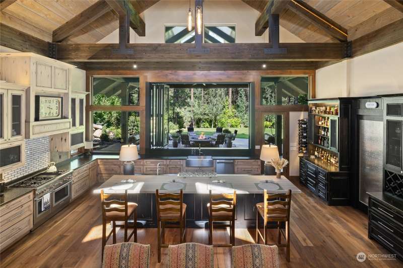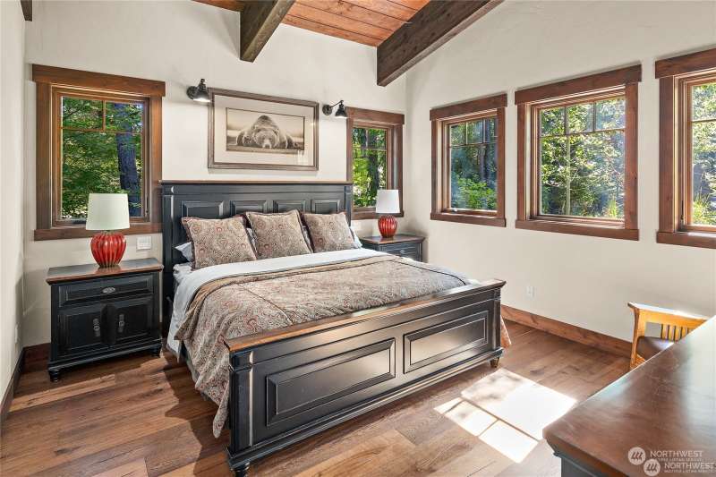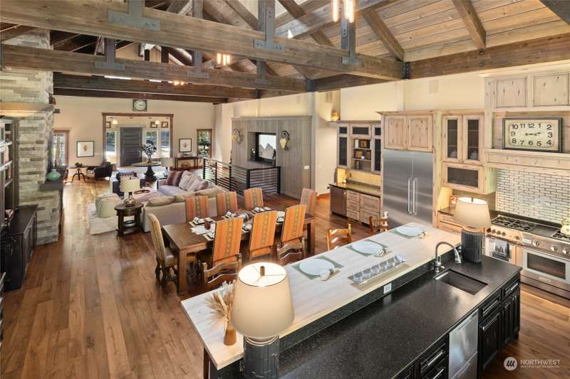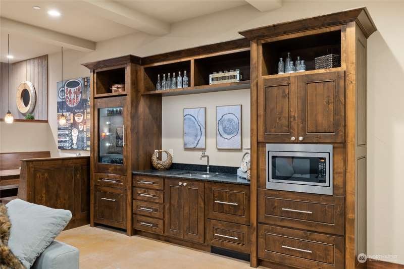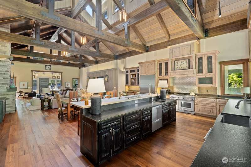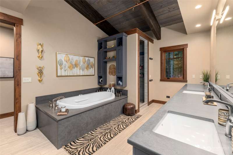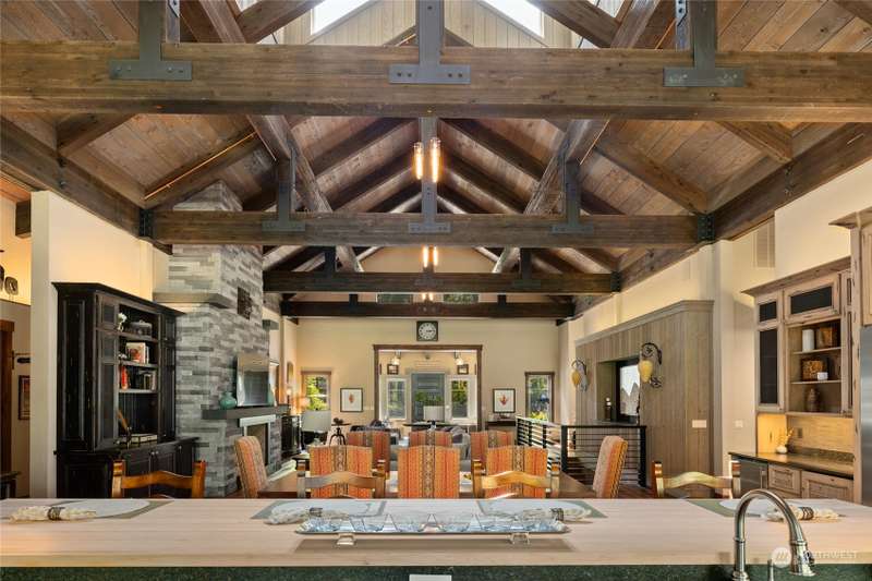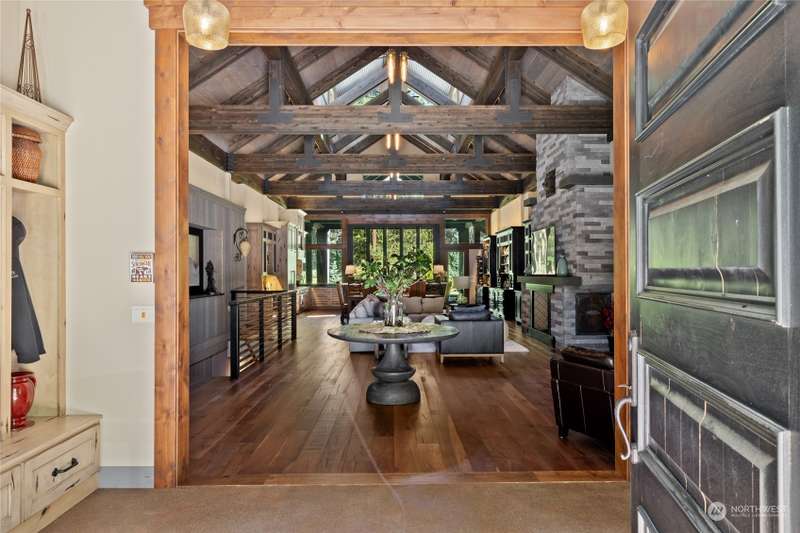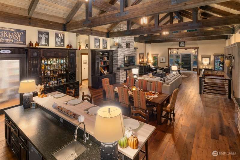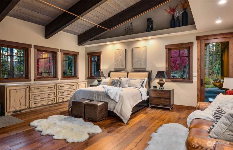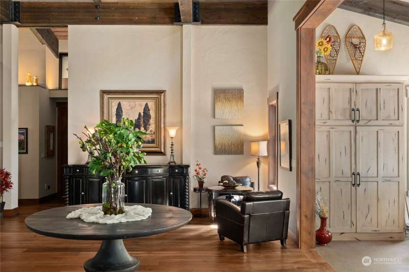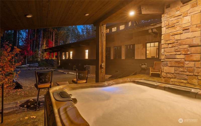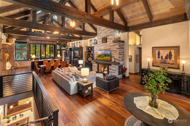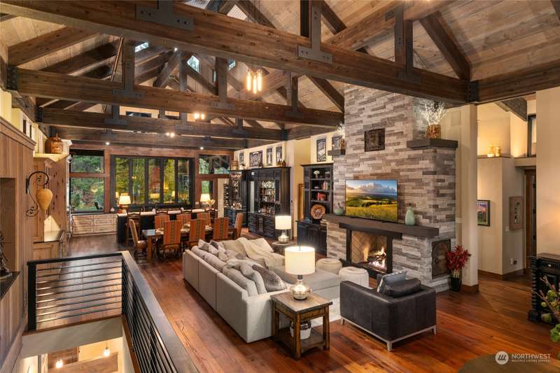 Spectacular 5-Bedroom Estate w/ Mountain Views, Gorgeous Outdoor Living, & Luxury Finishes. Welcome to this breathtaking 7,260 sq. ft. custom estate nestled on a serene 1-acre lot. Featuring 5 luxurious ensuite bedrooms—3 conveniently located on the main floor—this home seamlessly combines comfort, elegance, and functionality. Entertain with ease in the two expansive great rooms, or retreat to the stunning 2,000 sq. ft. covered porch, perfect for year-round outdoor living. Enjoy partial mountain views as you grill in the fully lighted and heated BBQ area, or relax by the tranquil waterfall. The beautifully landscaped grounds offer a private bocce court, covered hot tub w/ mature trees & lush gardens creating a peaceful, park-like setting.