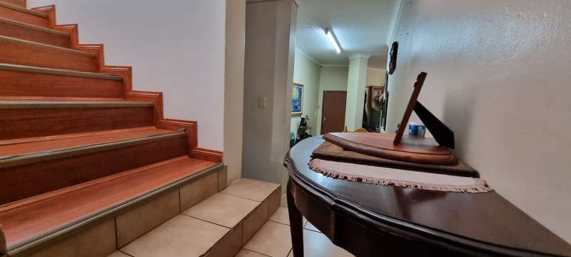 Double-storey home, location is key Ideally located close to many amenities Spacious living with 2 flatlets Main house offers you on ground floor: Formal Lounge Open-plan room with fireplace leading to Tv Lounge & Dining room leading to bar area spacious enough to entertain guests Kitchen with plenty of cupboard & counterspace 4 Spacious bedrooms with built-in cupboard Main bedroom has an en-suite bathroom & air-con Guest Toilet 1 Bathroom First floor offers you : 2 Bedrooms Built-in cupboards in both with main bedroom having open shelves walk-in change room 2 Bathrooms are en-suite 2 Bachelor Flatlets Covered patio leading to pool & spacious lapa with a built-in braai. Visitors carport parking Double garage Equipped borehole Water tanks with pressure pump Call me now to view this house & with a bit of TLC make it your DREAM home Connecting hearts & homes