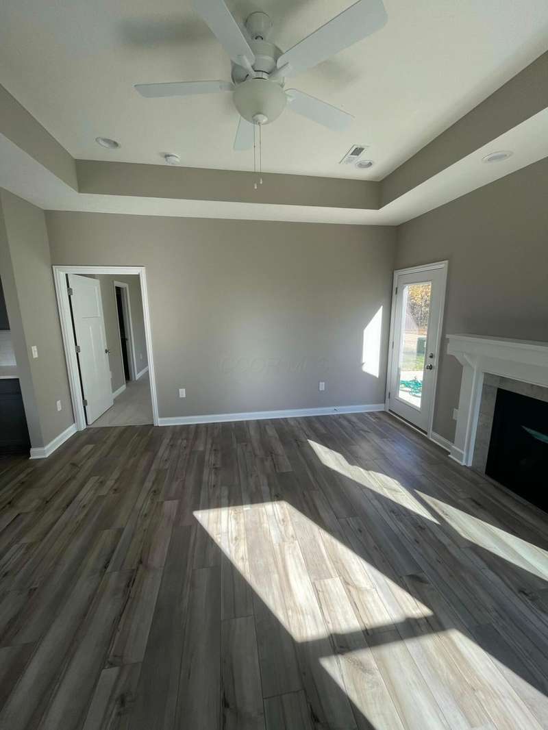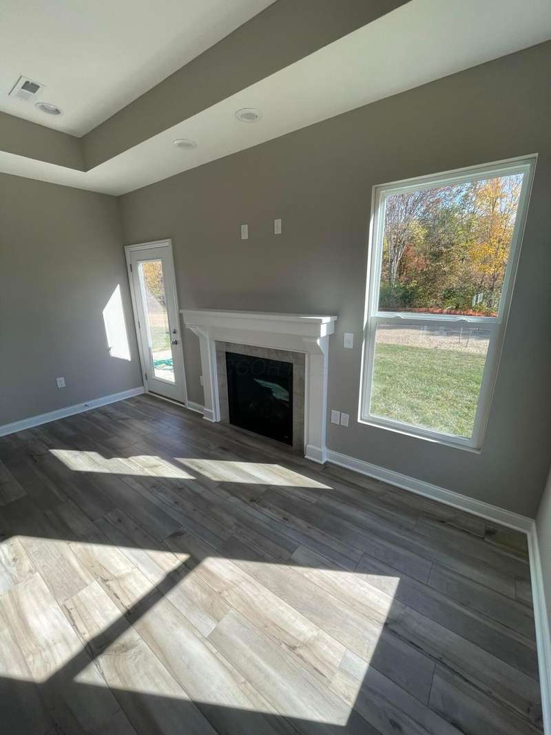 This stunning brand-new ranch home sits on a private, tree-lined lot with convenient access to the Powell Path System. Located within the Olentangy School District, this home offers modern comfort and high-quality finishes throughout.Step inside to a bright, open floor plan filled with natural light. The kitchen features an oversized island with seating for five, quartz countertops, GE stainless steel appliances, soft-close cabinetry, and LVP flooring. The Great Room includes a cozy fireplace with a custom mantle and a tray ceiling with recessed lighting, creating an inviting space for relaxing or entertaining.The primary suite offers a spacious walk-in closet and a luxurious private bath with a double vanity, tile flooring, and a walk-in shower with a built-in bench. Two additional bedrooms and a second full bathroom provide plenty of space and flexibility for your needs.Additional highlights include white trim and three-panel doors, a convenient laundry room, mud hall, and a two-car garage with an automatic opener.Enjoy the perfect blend of style and comfort.