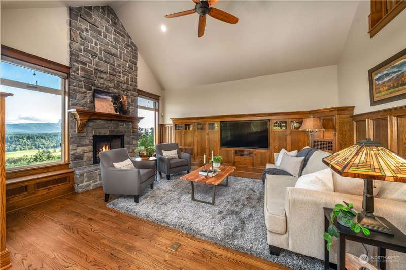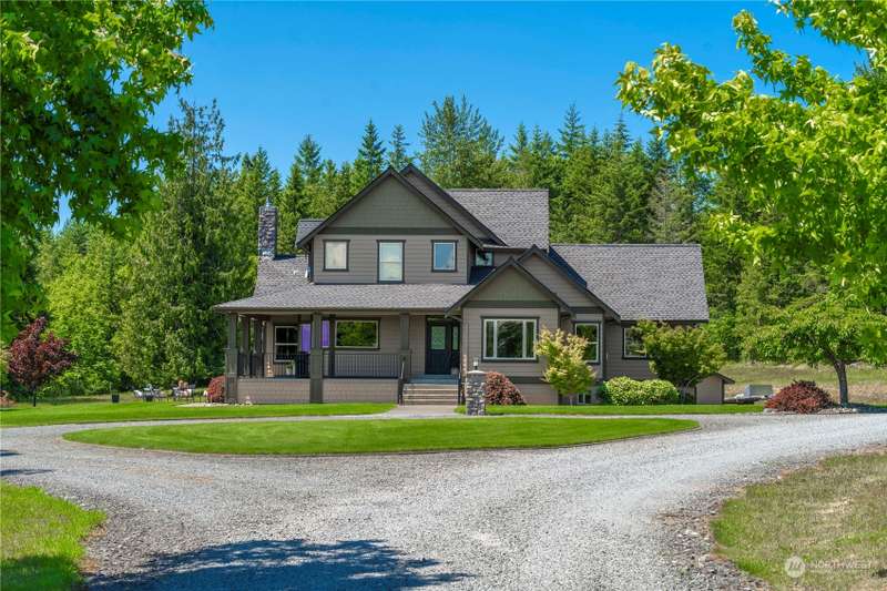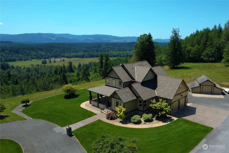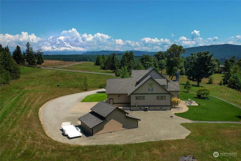 Custom legendary home built on 20 acres of generational wonderland & unreal views. 5218sf 5bed, 4.5bath w/ his & hers master on the main has all the high end comforts. Custom tile, woodwork, heated floors, radiant / heat pump, newer roof, windows, fireplaces, built-in movie theater, wet bar & sauna. Immaculately cared for home with homey feels in every room. Spectacular views of Mt. Rainier, the valley, Nisqually River. Incredible wooded trails winding through old growth timber w/ river access. High ceiling 3+ bay garage & detached garage. Plenty of room to build a horse barn, shop or stables for equestrian lovers. The comforts of a private gated community makes the grandeur of this property epic in every sense. Wake up to wildlife!