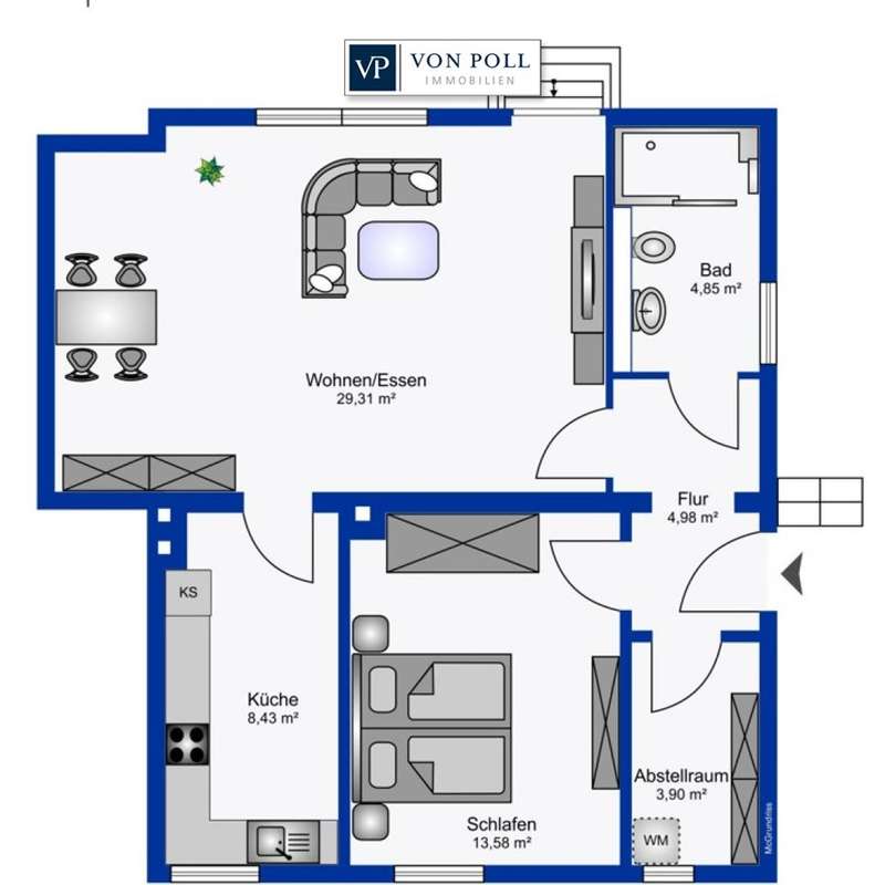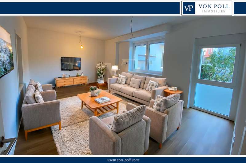 Modern apartment - first occupancy after complete refurbishment. Living on one level. This spacious 2-room apartment with uniform vinyl flooring and underfloor heating is located on the first floor of a well-kept 9-party house. The apartment was completely renovated in 2023 and restored to as-new condition. The low energy value is particularly interesting here. Energy class C (76 kWh/(m2*a)) is achieved thanks to full thermal insulation, which means you can look forward to low energy consumption and therefore low energy costs. A bright, friendly living room with enough space for a cozy dining area awaits you. All connections are available in the spacious kitchen, so you can plan your own dream kitchen. Next to the bedroom and the modern bathroom with a large window and floor-level shower is a storage room with a washing machine connection. The pleasantly high ceilings with integrated LED spotlights create a spacious ambience. All windows are fitted with electric blinds. The apartment has a separate cellar compartment. Are you interested in this centrally located condominium? Please contact us on 0179-2274038 or send us an inquiry by e-mail.