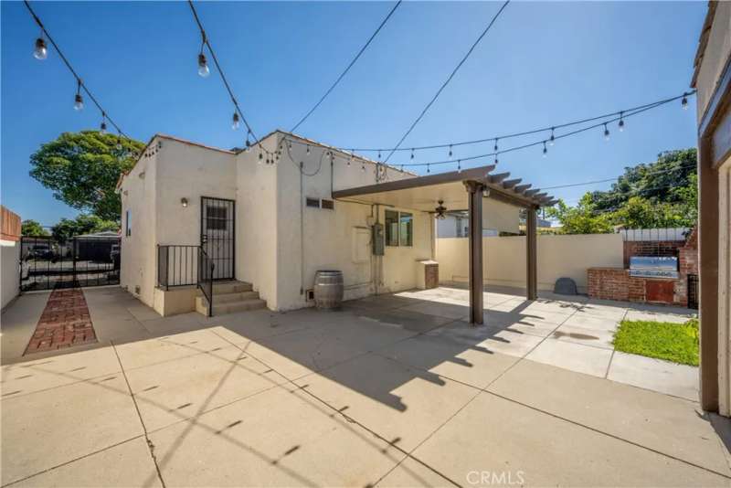 Classic 1928 Spanish-Style Home Updated with Charm Intact! Beautifully maintained 1928 Spanish-style home featuring a spacious, light-filled living room with high coved ceilings, large picture windows, original wood floors, and plantation shutters. Formal dining room with arched entry and matching shutters. Remodeled kitchen includes granite countertops, newer cabinets, tiled flooring, and custom lighting. Full bath with granite-top vanity, custom tiled shower, and floor. Original wood-paned picture windows in family room and formal dining room and newer double-pane vinyl windows and blinds throughout. Home offers two generously sized bedrooms with coved ceilings and original hardwood floors throughout. Unique stained-glass hallway door and charming built-ins add to the homes character. Inside laundry/service porch for added convenience. Tankless water heater, upgraded 200-amp electrical panel, and a retrofitted foundation. Private backyard features a covered patio, built-in commercial BBQ with gas line and outdoor fireplace, block fencing, and automatic sprinklers (front & back). Detached 2-car garage with automatic opener. Garage is insulated and drywalled along with epoxy flooring. ADT alarm system ready. A perfect blend of timeless style and modern upgradesdont miss this rare opportunity!