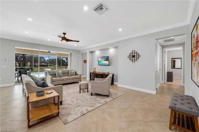 Delightful DUNWOODY TRAIL HOME! This charming 3-bedroom + den residence with a pool and spa offers 2,516 sq/ft of comfortable living space under air. Built in 2011, it features a 3-CAR GARAGE, an open-concept kitchen with a large island, and a bright southeast exposure that floods the home and pool deck with natural light. The spacious primary suite includes a walk-in closet, a luxurious bath with a separate tub and shower, and tranquil lake views as your backdrop. Outside, a large side yard is perfect for recreation, while the screened lanai and pool area invite year-round relaxation. At VeronaWalk, enjoy exceptional amenities: lagoon and lap pools, tennis, pickleball, a fitness center, weekly farmers market, playground, and even on-site conveniences like the Pink Frog Cafe, Verona Cafe, gas station, post office, and beauty salon. The vibrant Town Center hosts endless activities and gatherings, creating a true sense of community. Don't miss the chance to call this beautiful home yours-schedule your private showing today!