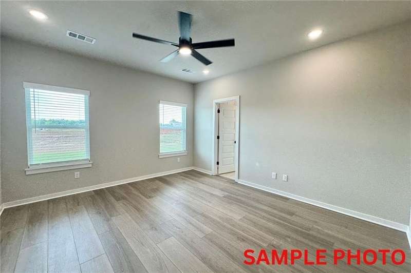 Colby plan with 1 level, garage on the right and East facing! Select your interior packages! 9 ft ceilings, linear electric fireplace, LVP flooring throughout the main living areas and master bedroom, quartz countertops and more. Chef's kitchen boasting frigidaire stainless steel appliances, gas range, pantry, quartz countertops, bar pull handles, large island and gorgeous backsplash. Luxurious master bedroom features abundant natural light, while the spa-like master bathroom offers a walk-in shower, double sinks, tub, and spacious walk-in closets. Additional features include a formal dining room, three large secondary bedrooms and a functional laundry room. Nestled on a generous lot with covered patio that overlooks the serene sodded, fully fenced backyard. Sturdy concrete siding! Model home located at 3631 Tranquility St- Lot 1.