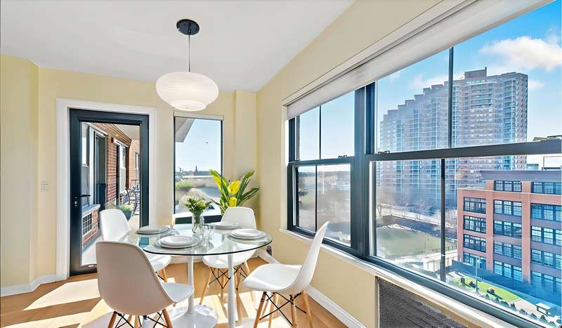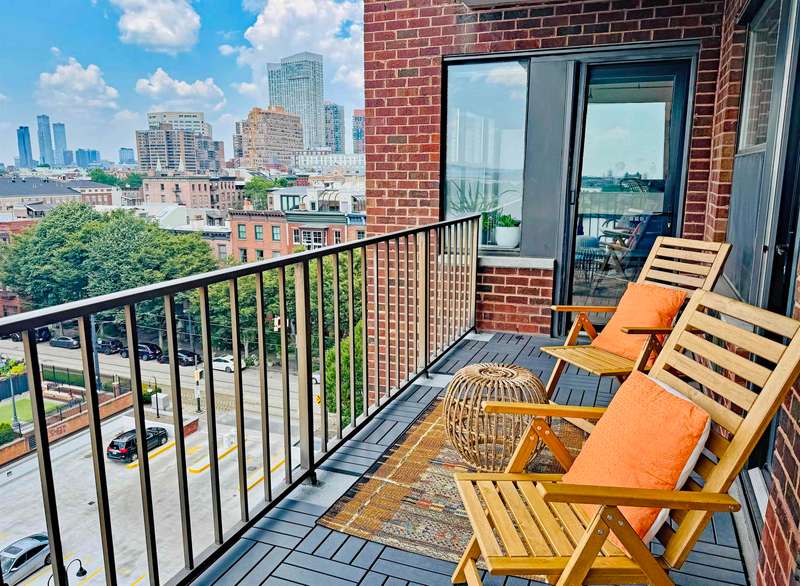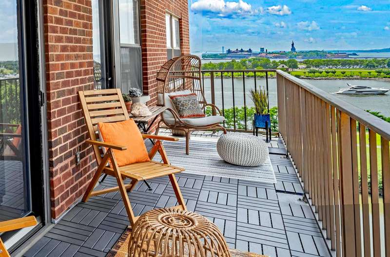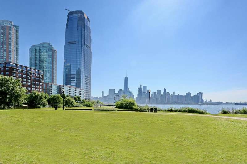 Almost 1500sf of luxury living at Clermont Cove, formerly the Colgate Palmolive Factory, now one of Paulus Hook's most exclusive doorman buildings. This spacious, recently renovated home features two bedrooms plus a large den(3rd BR), two full baths, a large dining living area, plenty of closet space, and a huge private terrace with serene, protected views of the Statue of Liberty, New York Harbor, and Liberty State Park. This sun-filled space boasts an open style kitchen with granite countertops, custom cabinetry, S S appliances and tasteful upgrades including a wine refrigerator and minibar. The terrace can be accessed through the living room and bedrooms. The extra room is currently being used an office/huge primary bedroom suite, but was previously used as a 3rd Bedroom, and can easily be converted back. Approved architectural plans in the photos, detailed plans are available upon request. One valet garage parking space is included in the maintenance fee. Clermont Cove is a full service, luxury building full of amenities including swimming pool, gym, BBQ area, Sky lounge with amazing NYC views, laundry room, and 24 / 7 concierge. One of the best locations in Paulus Hook - surrounded by parks, nature, restaurants, and shopping, PS 16 school district, with easy access to NYC via Ferry or Exchange Place PATH just minutes away. Whole Foods a quick 7min walk.