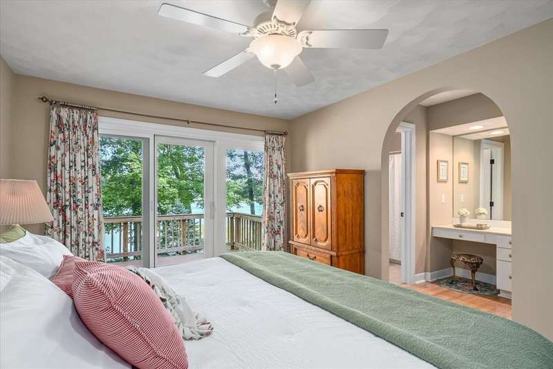 Welcome to your lakeside retreat on beautiful Crooked Lake! This stunning 6-bedroom, 4.5-bath home offers over 5,000 finished square feet of living space, a 4-car attached garage, and sits on just over an acre with 135 feet of private frontage. This residence combines luxury, comfort, and breathtaking water views. Step inside the covered stone entryway to find vaulted ceilings with wood bead board accents and a wall of windows framing panoramic views of the lake. The living room features a cozy fireplace and flows seamlessly into the chef's kitchen-complete with a large island with seating, stainless steel appliances, double oven, range hood, glass-front cabinetry, and abundant storage. A bar area with additional counter seating connects the kitchen to the formal dining room, which opens to a Three- season sunroom with a wood-burning stove and access to the outdoor deck overlooking the lake. The main floor primary suite is a private retreat with its own deck, spa-inspired en suite, and serene lake views. Two additional bedrooms and a full bath, plus a convenient half bath, complete the main level. The walk-out lower level offers incredible entertaining space with a stone fireplace, wet bar, full bath, and two additional bedrooms. Step outside to enjoy the firepit by the lake or store your water toys in the lakeside shed. Finishing the main level, an additional Kitchen. Above the garage includes an exercise room, large living area, bedroom (currently used as an office), and private bath ideal for guests, extended family, or work-from-home needs.--