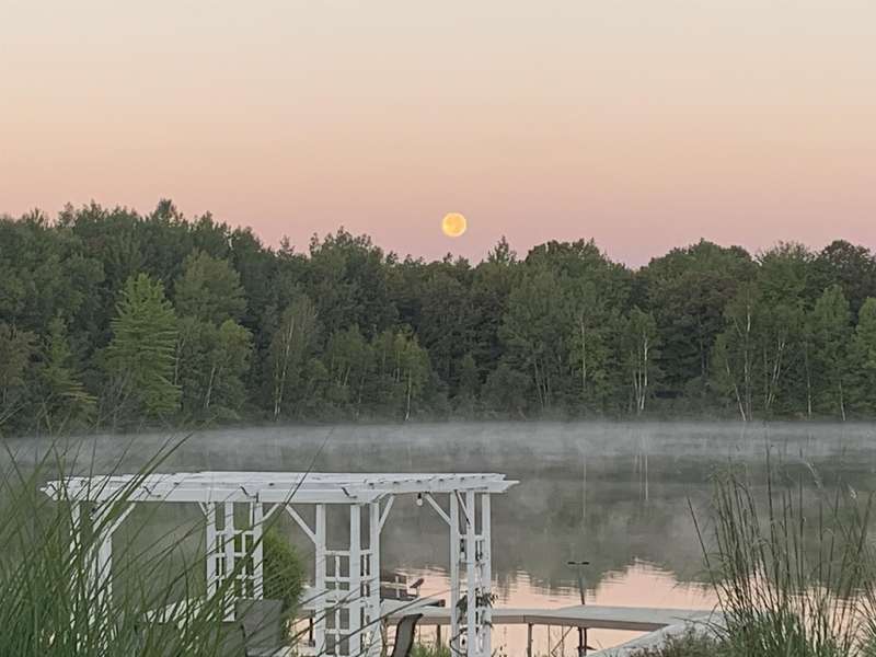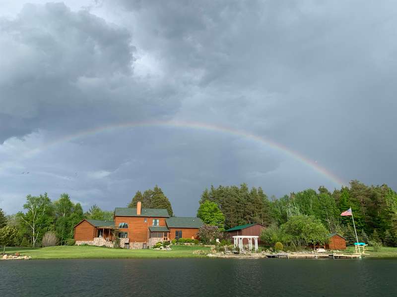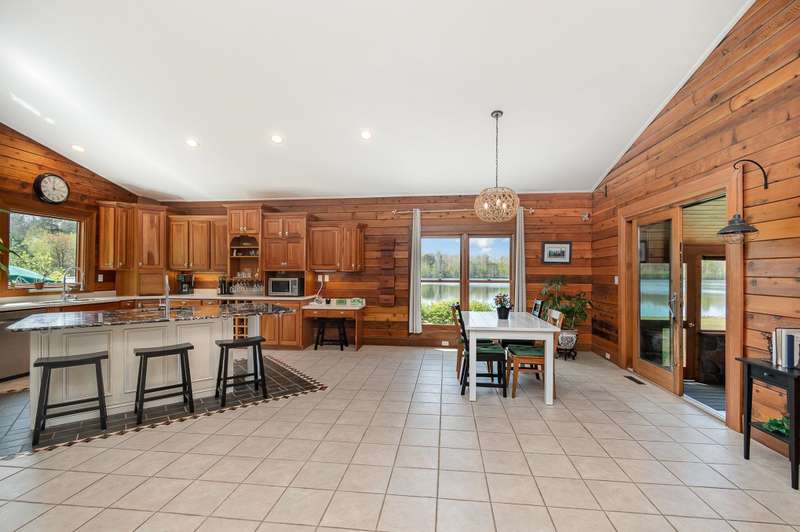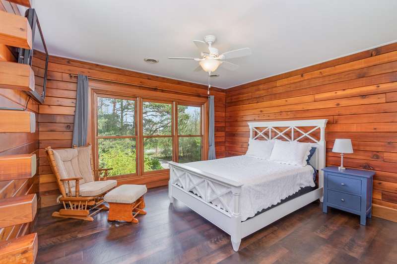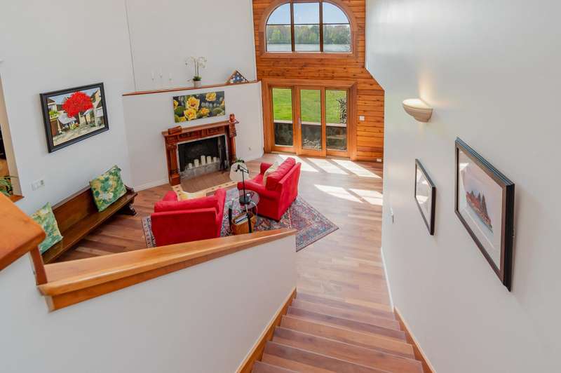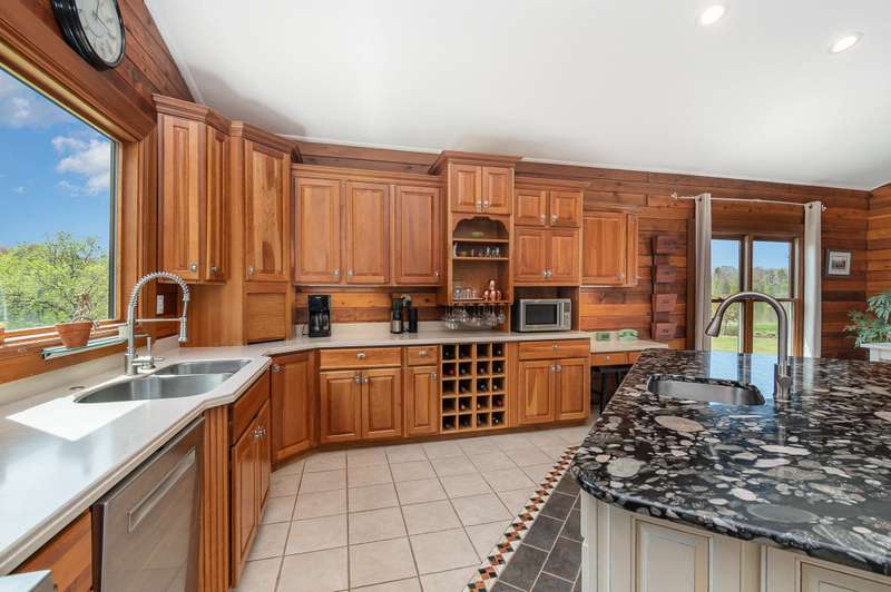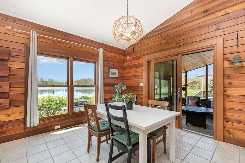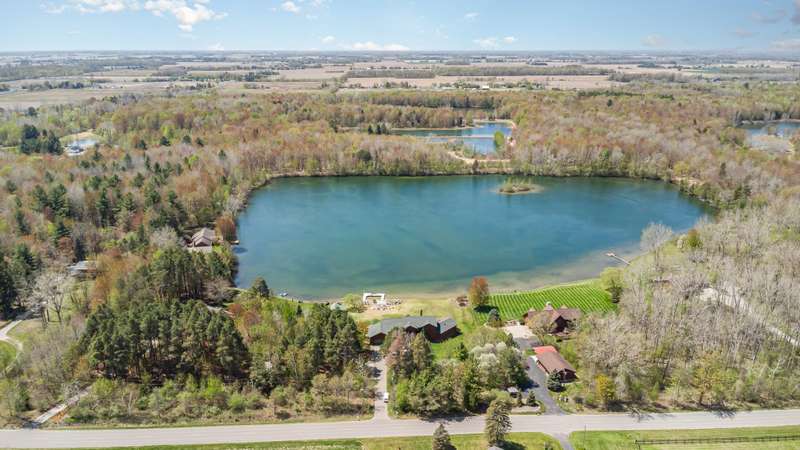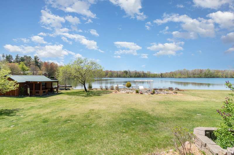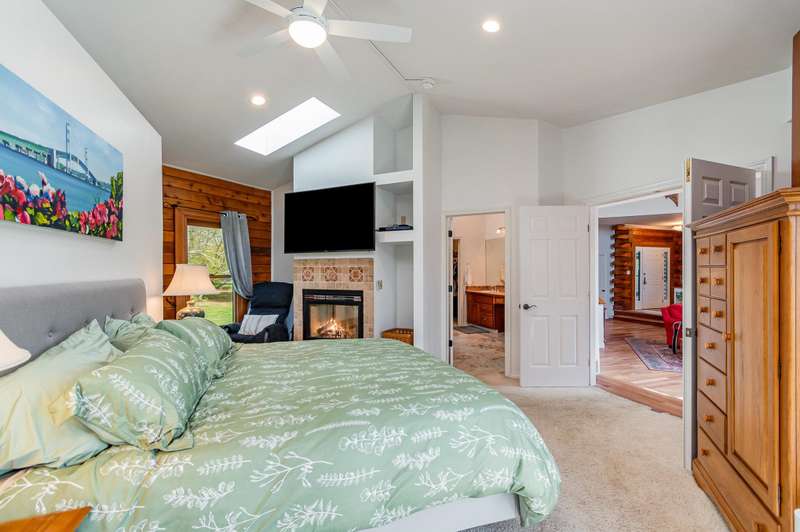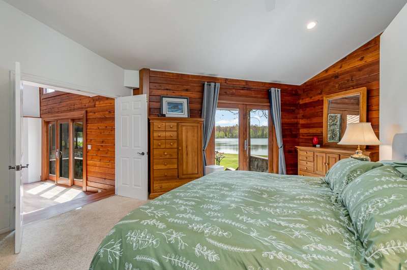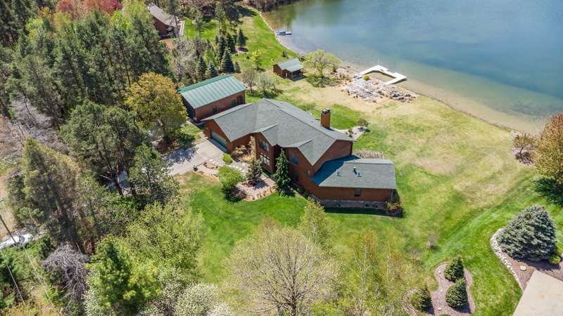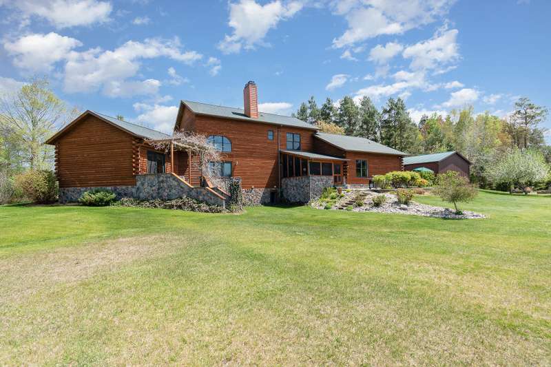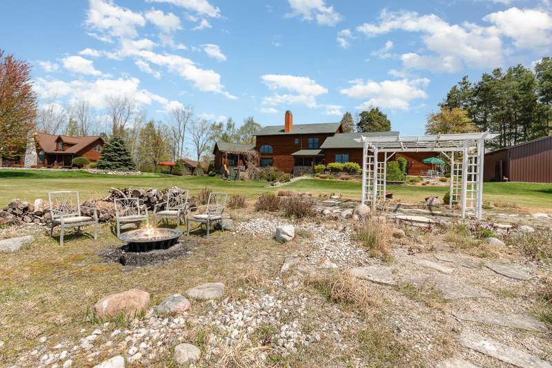 WATERFRONT ! Experience the ultimate in “Up North” living within close proximity to Midland (17 minutes) and Bay City (10 minutes) in this stunning waterfront cedarlog home, nestled on 3 private acres and offering part ownership of a pristine 33-acre private lake. Enjoy breathtaking sunset views from nearly every room, with the tranquility of nature just outside your door. Step inside to discover a one-of-a-kind interior, where craftsmanship and luxury meet. The gourmet kitchen features cherry cabinetry, an island topped with granite bedrock, and a breakfast nook that flow seamlessly into a welcoming living area anchored by cherry wood flooring and a striking limestone mantel. Cozy up by the family room fireplace, or retreat to the primary suite with its own two-sided fireplace, a soaker tub, and a private deck overlooking the water. Relax for hours in the enchanting screened porch (14x14) facing the lake--perfect for morning coffee, reading, or sunset watching. Additional outdoor living spaces include a lakeside pergola, fire pit, and a private dock for easy access to the water. Upstairs, you’ll find a spacious loft, two bedrooms, and a full bath, while the partially finished basement offers egress windows, a fourth bedroom, and energy-efficient spray foam insulation throughout the basement and crawl spaces. For your storage and hobby needs, a 30x40x12 pole barn (built in 2020) provides ample space with potential for a loft, plus a 12x20 storage shed for all your lake toys. The home is equipped with city water, natural gas, and a new roof installed in 2017. This exceptional property blends the serenity of lakeside living with luxurious details and modern conveniences--your perfect retreat awaits! OPEN HOUSE Sep 6th noon to one.