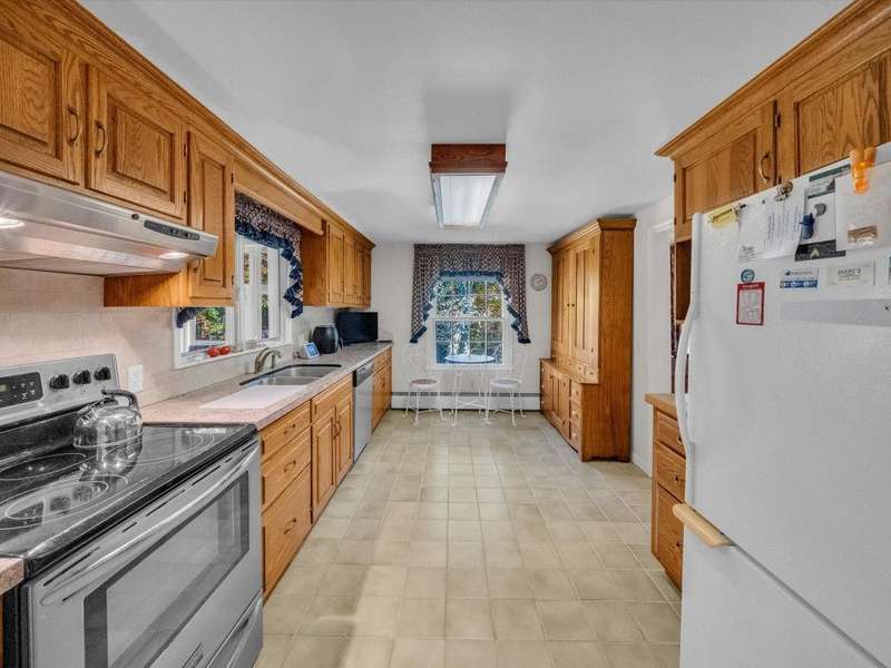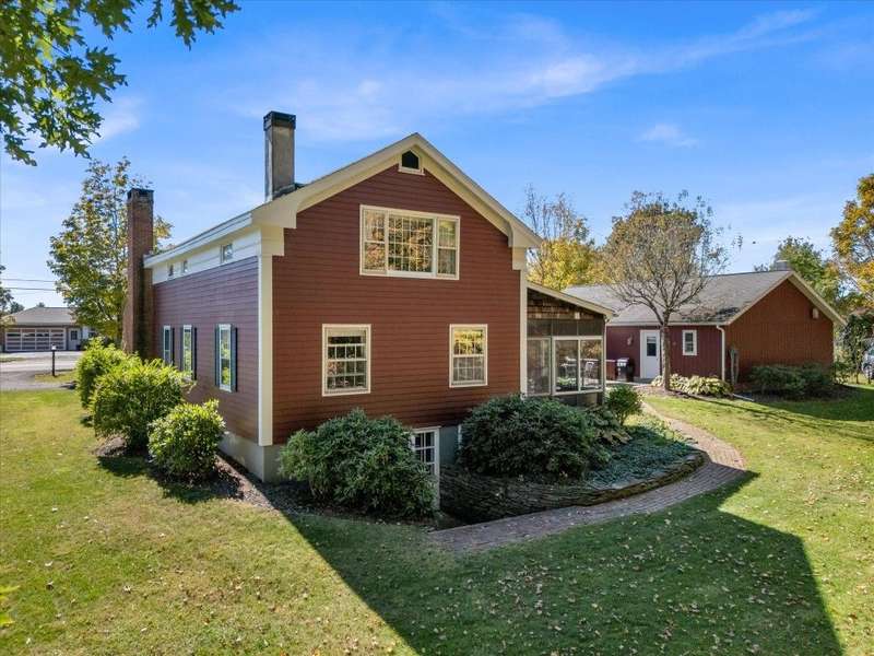 Charming custom 1925 farmhouse with nearly 3,000 sq. ft. on .99 acres. This 5 BR, 2 BA home features a main-level bedroom, office, and full bath plus 4 bedrooms and another full bath upstairs. Highlights include custom woodwork, oak floors, 2 wood-burning fireplaces (incl. Heatilator), and pine board flooring under upstairs carpet. Recent updates: brand-new Utica boiler with transferable warranty, 200-amp service, 230' well with newer pump, and 1,000-gal septic (pumped 2020). Partially finished walkout basement expands living options. Detached 40x40 2-car garage with workshop/office plus large barn for storage. 2013 survey on file. A rare blend of character, space, and modern updates minutes from Binghamton.