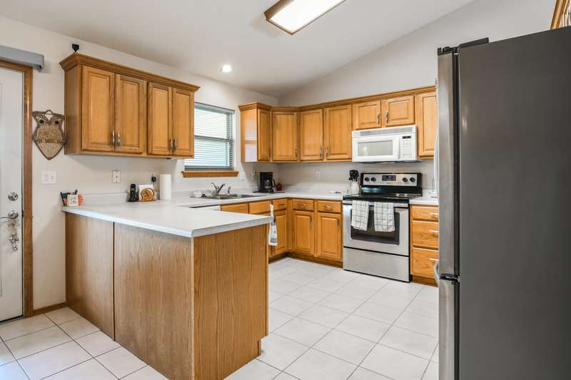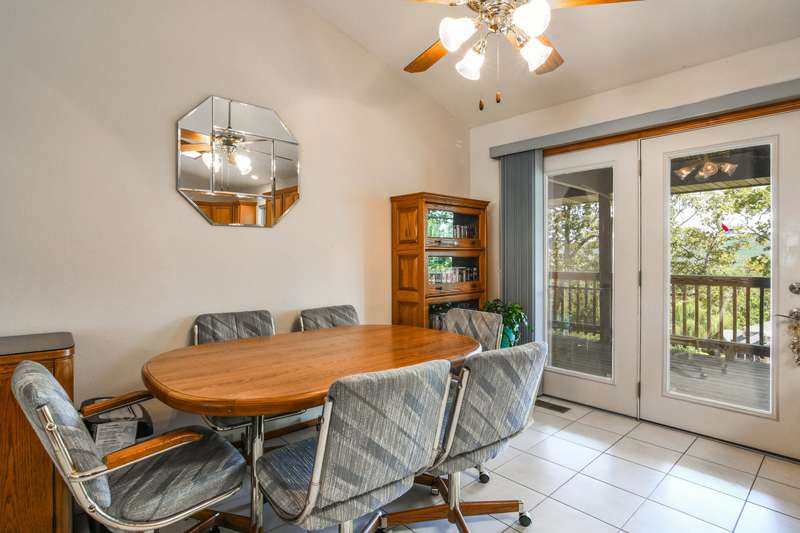 This is a great home with 3 bedrooms and 3 full baths Duplex. This will make a great lake home. DON'T OVERPAY FOR MONTHLY FEES WHEN THIS NICE HOME IS ONLY JUST A FEW BLOCKS FROM THE LAKE. It comes with the furniture. (Seller will keep rolltop desk in the Family Room) All the kitchen cabinets are oak. Very nice size rooms. All the bedrooms have walk-in closets. The main bedroom has a bathroom. One in the hallway and one down in the basement. The family room is very big with a wet bar. It is a very nice deck, and it is covered and a nice patio on the lower level. New furnace in 2023. The roof is 7 years old. You will have room for a workshop (Storage) in the lower level. You are just blocks away from the Kimberling City Marina. The Library is just a haft block away. The Grocery store is just a few blocks away. You will be only a few minutes to Branson with all it has to offer. Come and take a look. Get ready to enjoy the Lake. The laundry is on the main level. Lawn sprinkler.