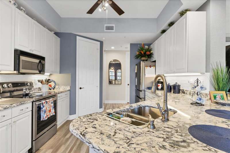 Step into this beautifully updated condo in the prestigious gated community of Vivante, Punta Gorda’s premier address for Resort Style Living. Style, comfort, and functionality blend seamlessly to create the perfect Florida retreat. This residence has been thoughtfully enhanced from top to bottom with elegant finishes and smart upgrades. The kitchen is a showpiece with its newly installed Luxwood Grey Birch flooring, gleaming quartz countertops, modern backsplash, freshly painted light grey cherry cabinetry, new hardware, under-cabinet lighting, recessed LED lighting, additional outlets, and a sleek new sink and faucet. A new fan and light fixture complete the space, while the Ecobee SMART thermostat ensures year-round comfort.The updates continue throughout the living and dining areas with new flooring, plantation shutters, chic lighting, fresh window treatments, and thoughtful design touches, including a decorative shutter accent on the lanai door. The lanai itself is equipped with a remote-controlled hurricane shutter for peace of mind. Both bedrooms offer stylish functionality—the guest bedroom features new shutters, a custom-designed closet by Inspired Closets, and a built-in desk with file drawers and printer storage, while the master suite showcases redesigned dual closets, recessed lighting, and elegant new shutters. Both bathrooms have been completely reimagined with spa-like finishes. The guest bath boasts brand-new tile, granite counters, fixtures, and a glass shower door, while the master bath offers a luxurious new soaking tub, granite counters, re-painted cabinetry, dual sinks, walk-in shower with new glass enclosure, and all-new tile, mirrors, fixtures, and accessories. Even the garage has been upgraded with added lighting, outlets, and a dehumidifier connection. Beyond your front door, Vivante delivers the lifestyle of a five-star resort. Residents enjoy a breathtaking lagoon-style pool and spa, an Olympic-sized lap pool, a state-of-the-art fitness center, and a full-service spa. The elegant clubhouse offers gathering spaces, a library, billiards, and a calendar of social activities, while lighted tennis courts and scenic walking paths encourage an active lifestyle. All of this is set in Punta Gorda, a gem along Florida’s Gulf Coast consistently ranked as one of the state’s best small towns. With its charming historic district, boutique shops, art galleries, and waterfront dining, Punta Gorda offers a unique blend of coastal sophistication and small-town charm. Miles of Harborwalk trails, award-winning parks, and world-class boating and fishing make it a true paradise for outdoor enthusiasts. Just minutes to the new Sunseeker Resort and 2 MLB spring training facilities. This tastefully updated Vivante condo is more than just a home, it’s your key to experiencing the best of resort-style living in one of Florida’s most treasured communities.