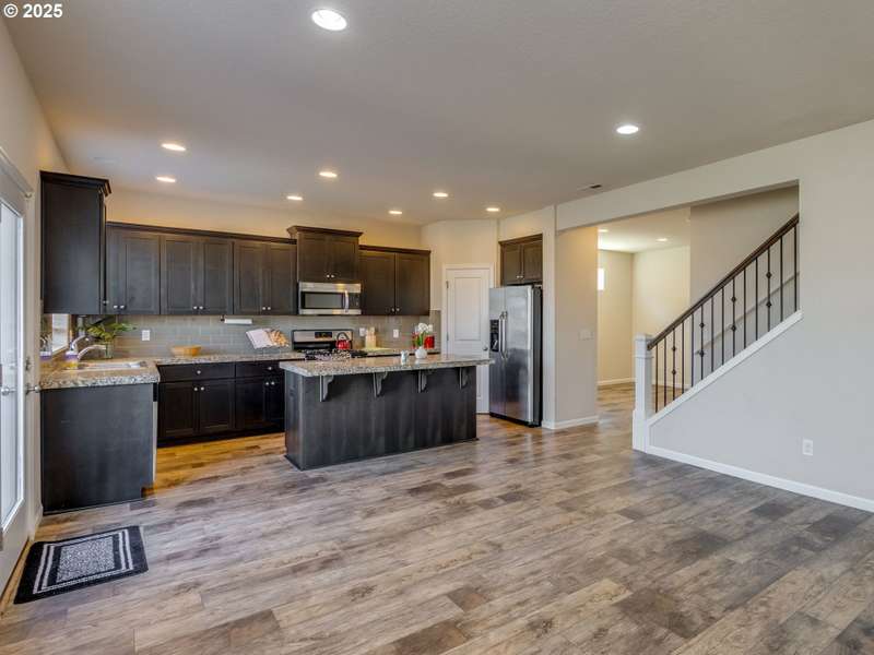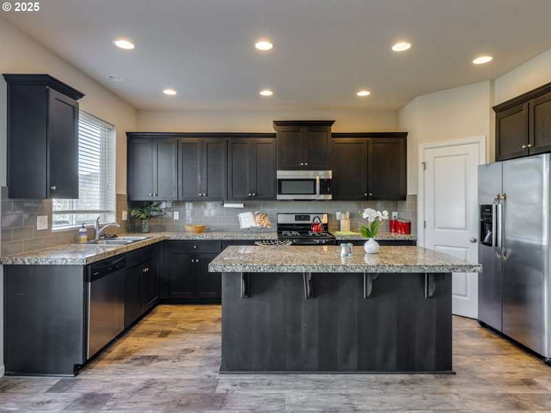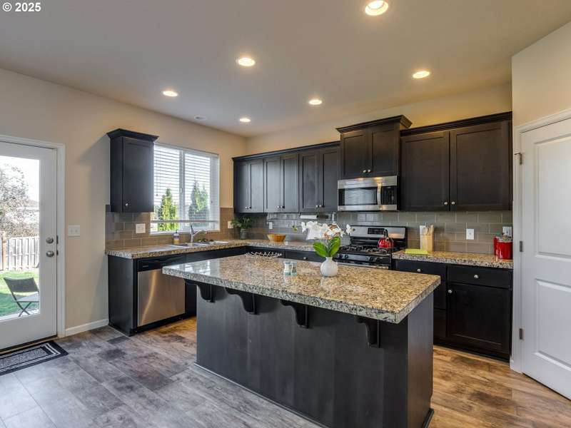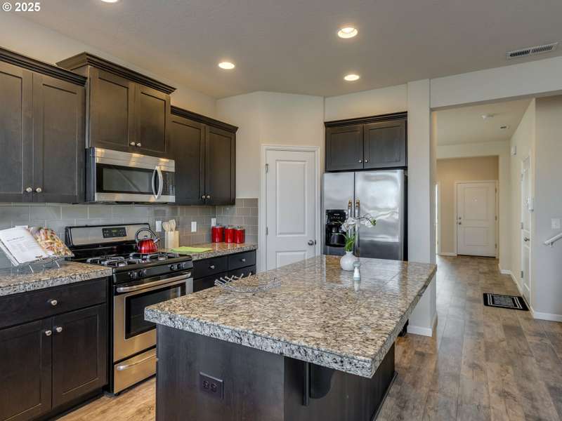 Beautifully appointed home with great views of rolling hills! Open great room with gas fireplace, spacious kitchen with walk-in pantry, granite center island, tile backsplash, SS appliances, formal dining room, plus den for hobbies or office. Wrought iron railings lead to spacious primary ste with tile floors, counter tops & shower, and 3 more spacious bedrooms plus loft. Fully fenced backyard with great views of undeveloped land and hills. GFA heating & AC, deep 2-car garage, shed for storage.