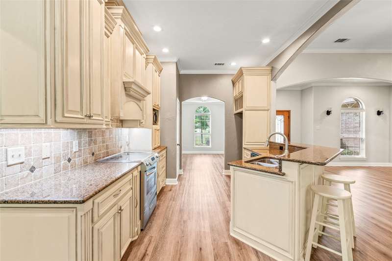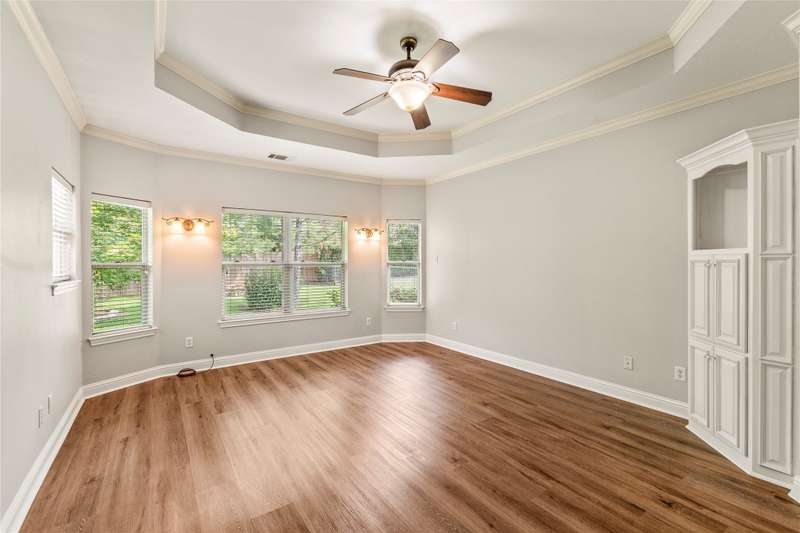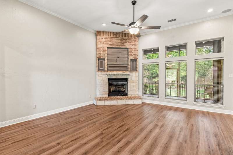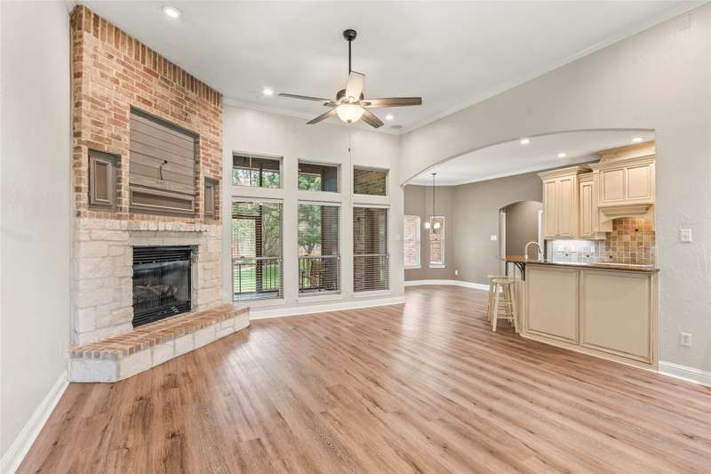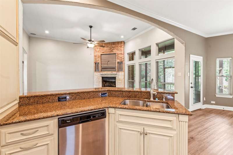 Located in Gun Barrel Citys gated Spanish Shores community, this single-story 3-bedroom, 2-bath, 2-car garage home offers over 2,000 square feet of living space and access to a private boat launch just down the street. The backyard offers a peaceful setting with a glimpse of Cedar Creek Lake through the treesbest enjoyed from the spacious screened-in porch, perfect for relaxing, dining or entertaining.Inside, youll find tall ceilings, crown molding, and an open-concept layout anchored by a gas fireplace with Austin stone and brick surround. Luxury vinyl plank flooring runs through most of the home, creating a clean, modern look. Just off the entry and kitchen, the formal dining room offers a welcoming space for gatherings, while a breakfast area off the kitchen and living room allows for casual dining with convenient backyard access.The kitchen features stainless steel appliances, granite countertops, and quality cabinetry. The primary suite offers a custom built-in closet system with an integrated makeup vanity. The ensuite bath features a granite dual-sink vanity, jetted tub, and tile walk-in shower. The guest bath also has a granite dual-sink vanity and a built-in linen cabinet.A spacious laundry room with upper cabinetry adds functionality, and the deep 2-car garage features a built-in workbenchideal for tools, hobbies or extra storage. The backyard is fully enclosed with a black chain link fence and also features a storage building for lawn equipment or seasonal items. The home is well maintained with key mechanical updates already completedroof (1.5 years old), HVAC (under 3 years), and a brand-new water heater.Enjoy the perks of being in Gun Barrel City, where you're just minutes from local shopping, dining, and everyday conveniencesall while having lake access and a quiet, gated neighborhood setting. Whether you're looking for a full-time residence or a weekend getaway, this home offers a wonderful balance of comfort and lifestyle.