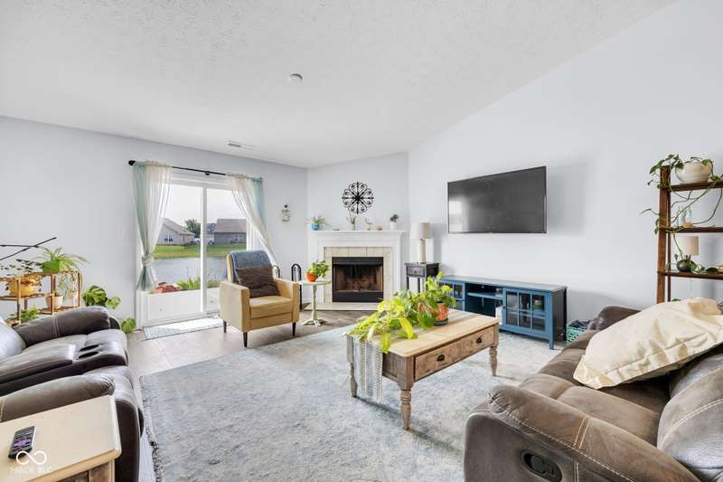 Autumn Woods :: Welcome to this beautifully maintained 2020 home featuring 4 bedrooms, 2 full baths, and a versatile den! Great vaulted ceilings and abundant natural light create an airy, open-concept living space that seamlessly connects the updated kitchen, dining area, and living room. The kitchen boasts a large center island, perfect for entertaining or casual meals. Cozy up by the fireplace or enjoy peaceful views of the pond through the expansive glass sliders. The main-floor primary suite includes a spacious walk-in closet and dual vanities. Two additional bedrooms, a full bath, and laundry are also conveniently located on the main level. Upstairs, you'll find a fourth bedroom or a perfect flex space for a second living room, guest suite, or office.