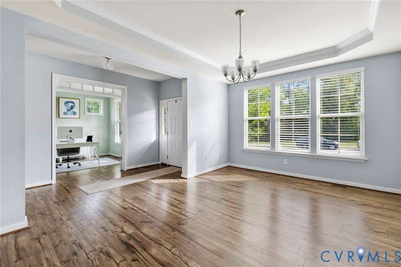 Stunning Model-Like Home in Amenity-Filled Harper's Mill! This 3,558 sq. ft. two-story beauty wows with curb appeal, fresh landscaping and a striking stone exterior set the tone. The quality of the construction as well as the care that has been taken is immediately obvious as you open the door. Inside, the foyer opens to a bright, formal dining room with tray ceiling and a private home office with French doors. The heart of the home is the expansive family room featuring a floor-to-ceiling stone fireplace flanked by built-ins and seamless access to a 16x10 screened porch. The gourmet kitchen flows effortlessly from the family room and is a showstopper with quartz countertops, a massive island with farmhouse sink, wall ovens, stainless steel appliances, chic tile backsplash plus a large, sun filled breakfast area. Located off the kitchen is the second home office located on the first floor making a great WFH set up or fun craft area for kids. A drop-zone mudroom connects to the 2-car garage and to the oversized, walk in pantry with custom shelving. Upstairs, the expansive loft offers endless flexibility making it the perfect movie night spot or kid hang out. The luxurious primary suite boasts tray ceiling, crown molding, two separate walk-in closets, and direct access to the laundry room. The spa-inspired bath includes dual granite vanities with lots of countertop and cabinet space and an oversized frameless tile glass shower with multiple shower heads. There are three additional bedrooms including one bedroom with its own en suite & custom closet, while another full bath and convenient laundry room with access to primary suite & hallway round out the level. Enjoy the outdoors on your screened porch overlooking a private, tree-lined backyard. All this in the highly sought after section of Glen Royal in amenity-rich Harper's Mill featuring pools, trails, playgrounds, and more! Home is back on the market due to no fault of the seller!