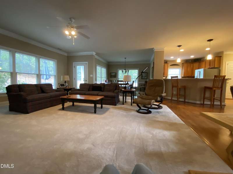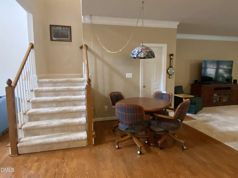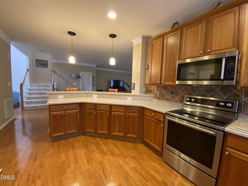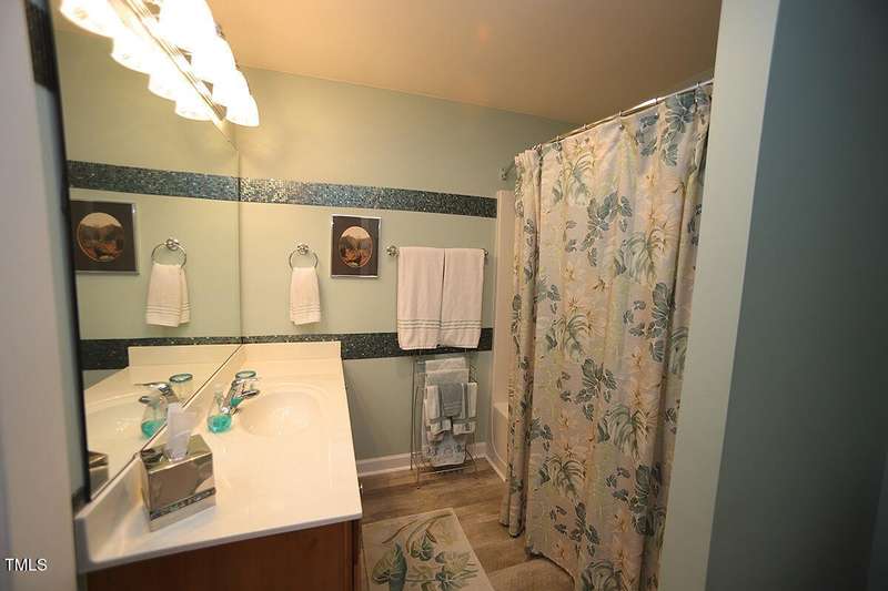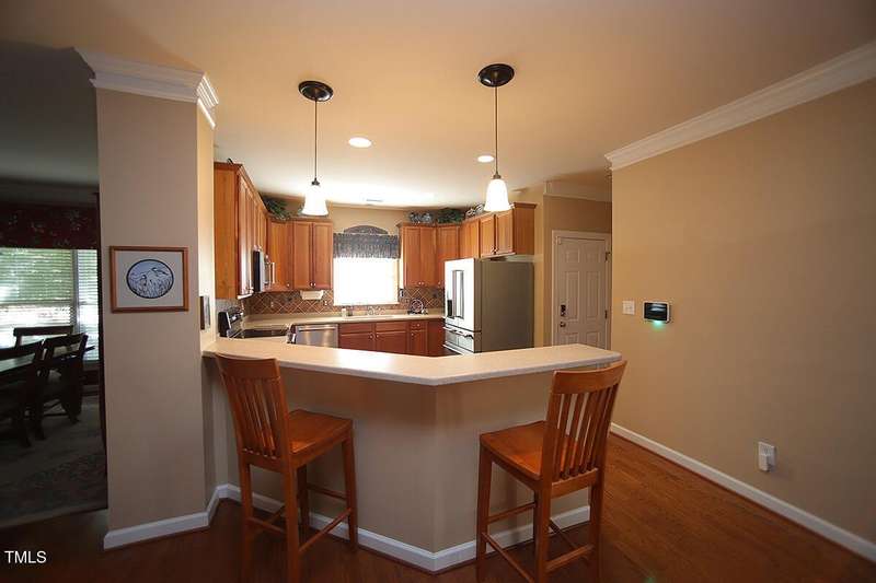 REFRESHED PAINT & PRICE!! Immaculate ORIGINAL OWNER, END UNIT in desirable N. Raleigh! Lovingly maintained with several updates. This warm home offers smooth surface Corian kitchen countertops, gorgeous almost new matching KITCHEN-AIDE appliances & beautiful cabinetry!Pantry/powder room and access to garage completes the kitchen nook. Enjoy eat in area PLUS full sized light filled sep dining! Entry living space could be nice office/den.Open, yet cozy, the fireplace grounds the family living space & formal dining room overlooks the TREXX deck off covered patio! Surrounded by gardenia, hydrangea and mature landscaping you can enjoy sipping your fav drink in your private oasis! There's also a sweet side yard giving added space and elbow room to play a game or walk the dog. Upstairs offers a 2nd living space via a large light filled loft! Large updated primary suite w/newer carpet and large bath , separate shower & soaking tub unheard of in this price range. New granite Ctrtps vanity w/dual sinks, LVP flooring. Did I mention the HUGE WALKIN CLOSET?!. 2 more spacious bedrooms & another full bath will give everyone their own space. Newer carpet with upgraded padding, gleaming hardwood floors, attached 2 car garage w/storage. POOL/PLAYGROUND within walking distance! Shopping/highways near by-enjoy all that N. Raleigh has to offer @ 8019 Satillo!