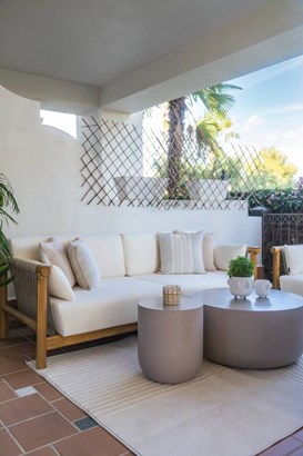 A classy, timeless apartment that reflects sophistication, elegance, and enduring style. It has superb open sea views and located in the most sought-after location and gated complex in the area of Golden Mile, Marbella.This first floor apartment has a feel of a penthouse due to open sea views and it is the perfect blend between the Andalusian style complex and the modern living. The designer gave a subtle touch of neutral color palette with top of the range furniture and furnishings , dark oak wood decors for a sophisticated feel and the perfect in and out feel with the terrace flowing together with the living room area.The layout is very functional without having any lost spaces offering a built area of 137m² and a spacious terrace of 82m² featuring 3 bedrooms and 2 bathrooms, just ideal for families or those looking for a comfortable home.Walkthrough : Short entrance hall , beautifully designed open plan kitchen that is fully fitted with modern appliances. The living area
