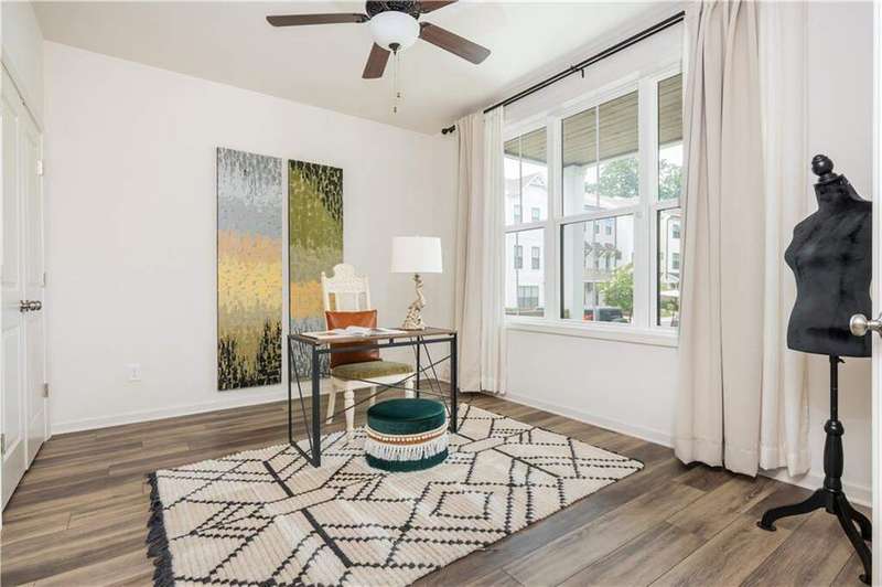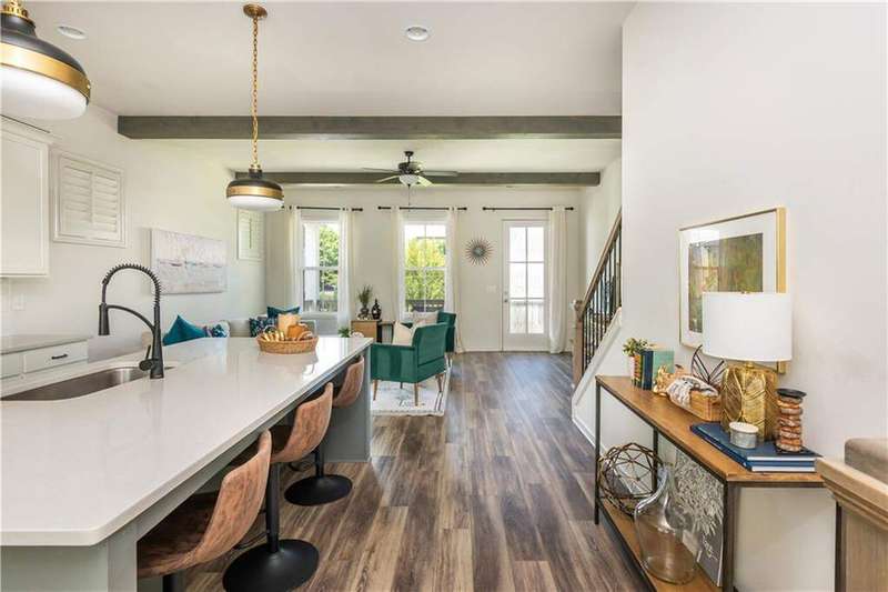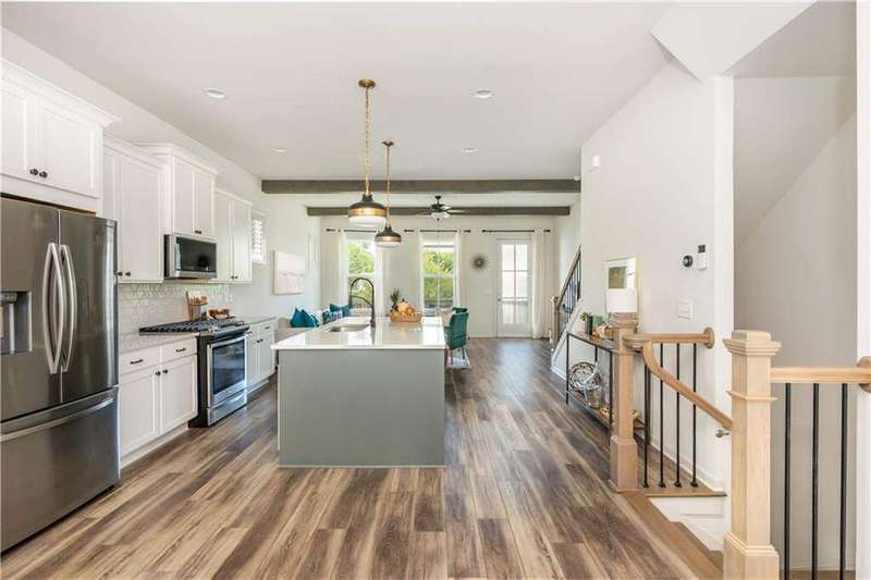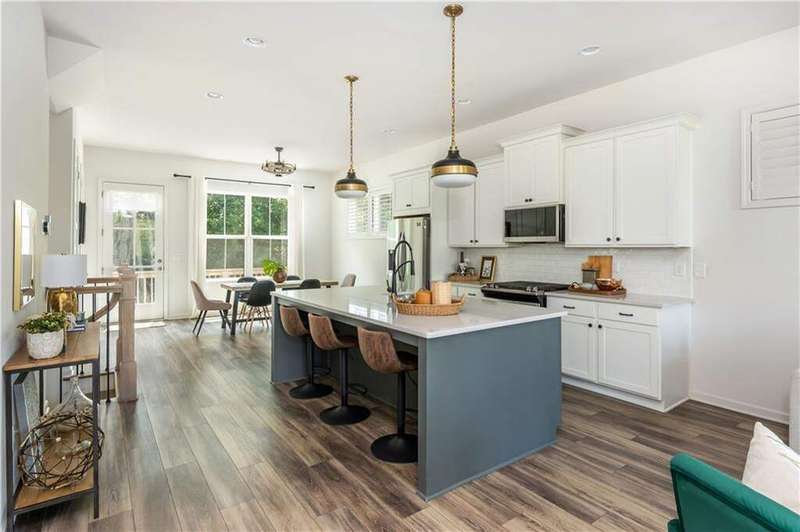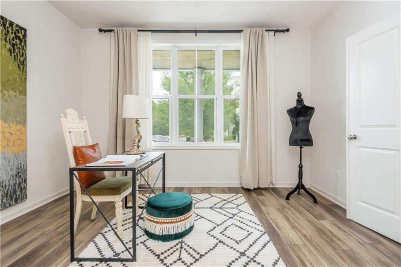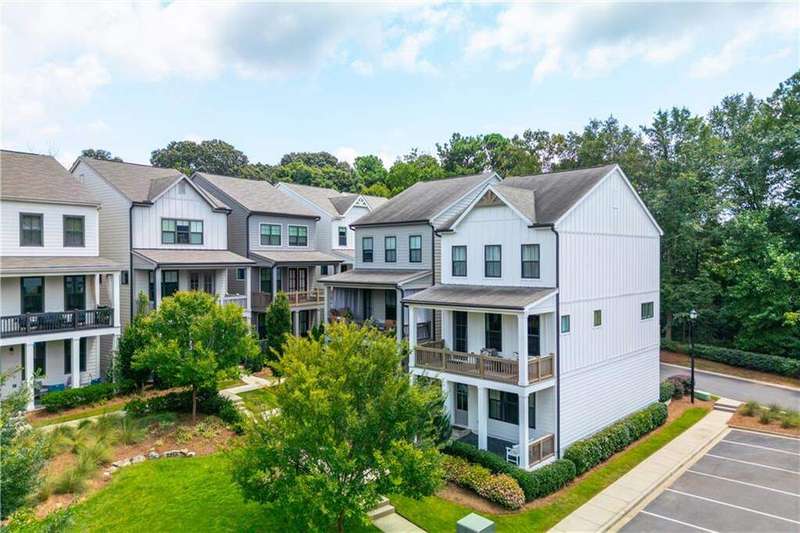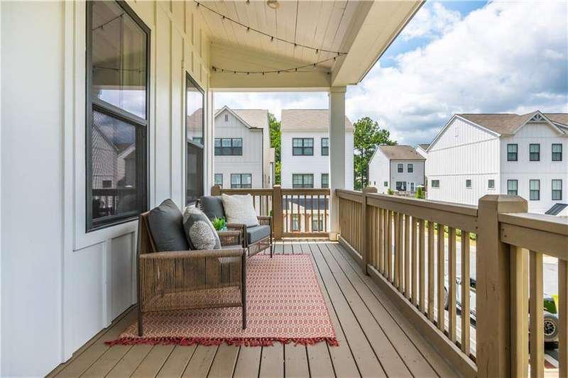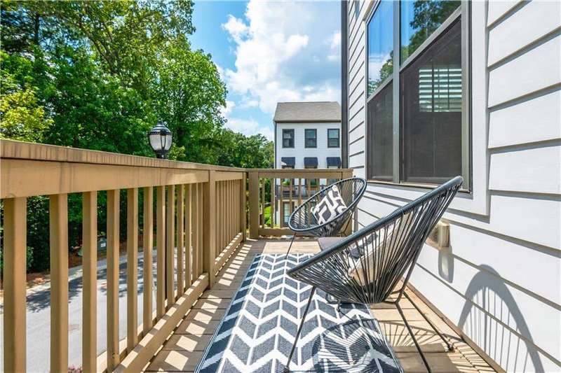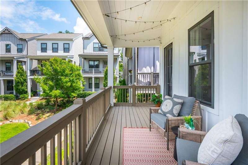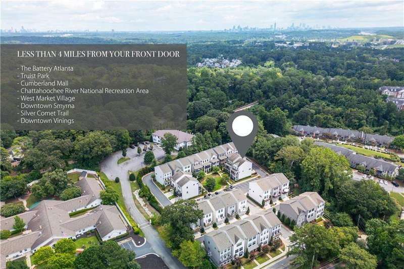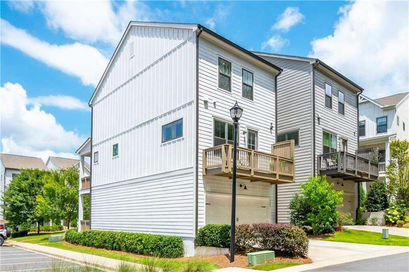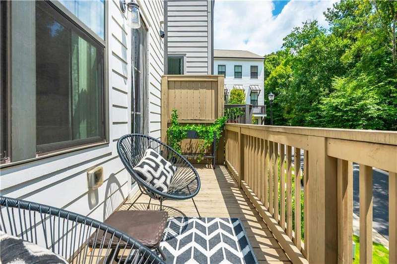 Looking for a beautifully quiet lifestyle right in the middle of one of Atlanta's hottest areas? Look no more. This incredible home is the epitome of vibrancy and privacy! Tucked away in a quaint community minutes from The Battery, Vinings, Smyrna, West Market Village, Chattahoochee Parks, and West Midtown, this home can't get higher marks for location! This home in-particular sits on one of the best lots in the entire neighborhood, fully facing the private park, tucked back off the main road, sitting at the very end of the row of homes, and has the highly coveted double front porch - tripling your outdoor space compared to other homes! Inside offers the perfect blend of style, space, and convenience with a light filled flexible floor plan. On the main floor there is a full two car garage, bedroom and bathroom that is a perfect place for a home office, gym space, or use as the third bedroom if needed, and a spacious foyer and mud room. On the main living floor, there is the large open plan with private wooded and park views from front to back! Centered in the heart of the home is the gourmet kitchen with quartz countertops, stainless steel appliances, painted wood cabinetry, huge island, and designer fixtures - on one side there is a large dining area with access to a rear porch, perfect for growing herbs and having coffee, and on the other a spacious and airy living room with beamed ceilings, huge windows, and access to that incredible covered porch that overlooks the park. Upstairs, there is an oversized primary bedroom with double vanity bathroom, huge shower, big walk-in closet, and more natural light with park views. On the other side of the home is another full bedroom and full bathroom, perfect for kiddos, secondary office, or guest bed when the guests just won't leave. Some great bonus features include TWO water heaters so your showers can be as long as your podcast, bidets on each toilet to stay squeaky clean, ALL appliances stay with the home (yes that means washer, dryer, and refrigerator!), systems that are barely over 5 years old so you don't have to worry about selling a kidney to get all new HVACs and roofing, and high walkability to get your steps in (or close enough for a fast uber and doordash). This home is the perfect fit for so many people and lifestyles, but the real question is who will be first to the table?