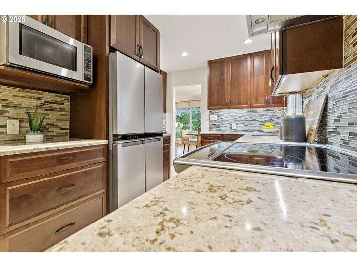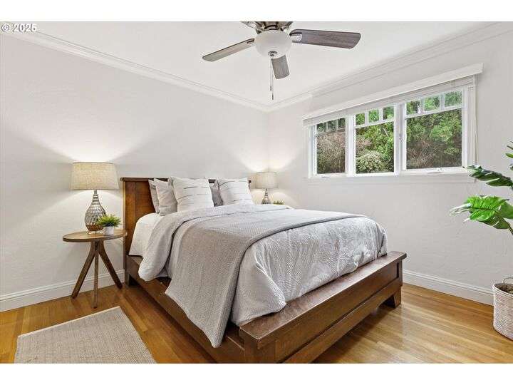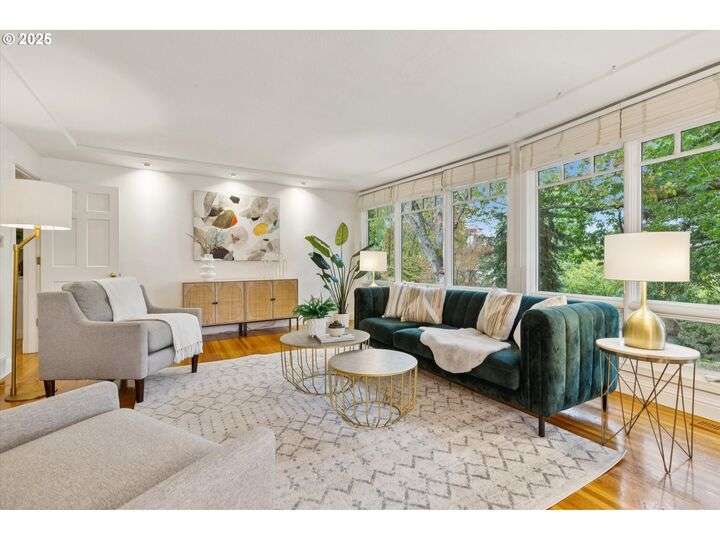 This beautiful move-in ready West Slope mid-century home has a wall of windows where sunlight filters through the incredible 150-year-old oak tree that graces the front yard. Hardwood floors and a gas fireplace bring a sense of warmth and welcome as you step into the living room. The main level continues with a primary suite, an additional bathroom and two more bedrooms. The kitchen has quartz countertops, stainless steel appliances including an induction oven, tile floors, a pantry and enough cabinets for all your kitchen gadgets. A spacious, finished basement with brand new carpet and a fresh coat of paint provides flexible living space with an expansive family room, two bedrooms, a full bath, a large laundry room, and storage. Walk through the back door to the well-designed backyard with a patio and raised beds for your gardening desires. Located in a highly sought-after location, just minutes to Beaverton and downtown, shops, parks, and schools (both public and private). Buy this beautiful home today with the interest rate you have been waiting for: call today to learn about the buyer incentive package being offered on this great home.