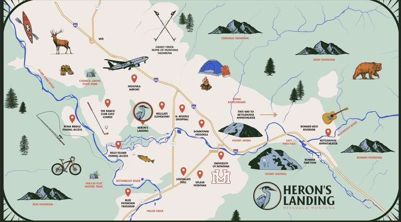 Incredible Opportunity at Heron's Landing! Multiple lots available in this stunning 72-acre, 347-lot master-planned community in the heart of the Missoula Valley. Heron's Landing showcases striking mountain modern architecture that blends contemporary design with the area's natural beauty-just minutes from the airport, top-rated schools, restaurants, trails, and river access. Choose from thoughtfully designed home plans included with lot sales, or bring your own ideas and imagination to create your dream home. Enjoy beautifully landscaped parks, playgrounds, and scenic trails in a neighborhood that offers both tranquility and connection. Perfect for families, builders, or investors-purchase a single lot or a package of premium lots in this sought-after location. Call for detailed property information.