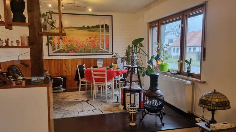 This rustic detached house was built in the 1970s as a solid construction and has been renovated, modernized and maintained by the current owner. With a living area of approx. 130 m², it offers you and your family plenty of space for comfortable living in the countryside. The house has a cellar, which not only offers additional storage space, but can also be used for a variety of purposes. The rooms on the first floor can be accessed via the veranda. The hallway, study, living area and kitchen can be accessed from here. The guest WC is still awaiting completion. The spacious living room has a fireplace and a small reading corner. A solid wooden staircase leads to the upper floor. There are three bedrooms and a bathroom with a bathtub. The house was extensively renovated in 2017 and 2018 to ensure contemporary living comfort. The installation of a modern condensing boiler ensures efficient and cost-saving heating for the house. In 2021/22, the roof was insulated on the inside and covered with high-quality glazed clay roof tiles on the outside. All floors were redesigned with a successful mix of tiles and laminate, which is not only attractive but also easy to clean. The non-woven wallpaper gives the walls a special touch and creates a harmonious overall picture. This solid detached house offers you the perfect blend of traditional flair and cozy living comfort. Take the opportunity to design this charming home according to your individual ideas. Arrange a viewing today and let this unique offer convince you!