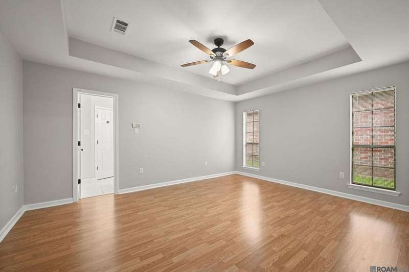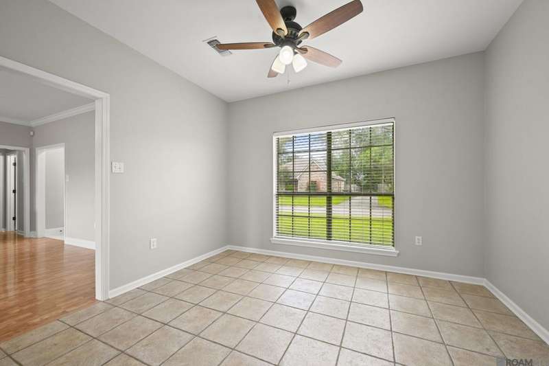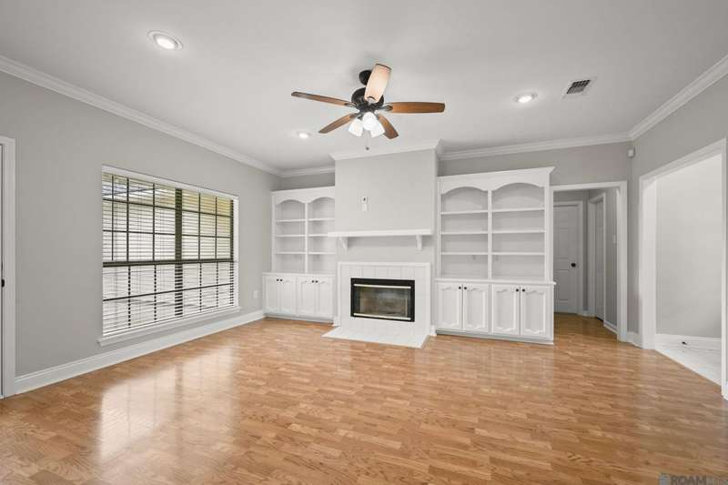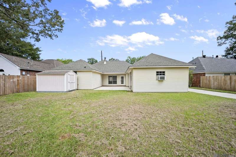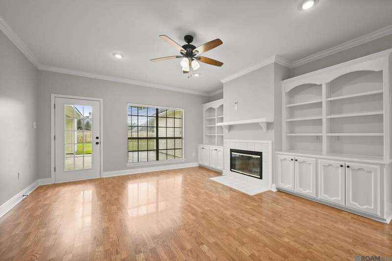 Meticulously Maintained and Move-In Ready! This 3-bedroom, 2-bath home sits on a generously sized lot with attractive curb appeal. Newer wood flooring extends through the living area and all bedrooms. The living room features a wood-burning fireplace along with built-in shelving and cabinetry. The functional kitchen includes bar seating and a spacious pantry. A walk-in laundry room offers upper storage cabinets for added convenience. The primary suite includes two walk-in closets, dual sinks, and a custom-tiled shower surround. An insulated workshop with wood flooring, heating, and cooling provides a flexible space ideal for a home office, gym, or studio. A large 8x10 Tuft shed offers additional storage for outdoor equipment or recreational items. The attic is also fully decked.
