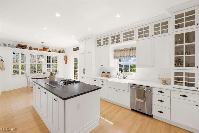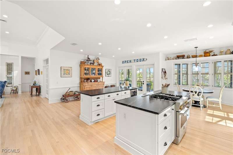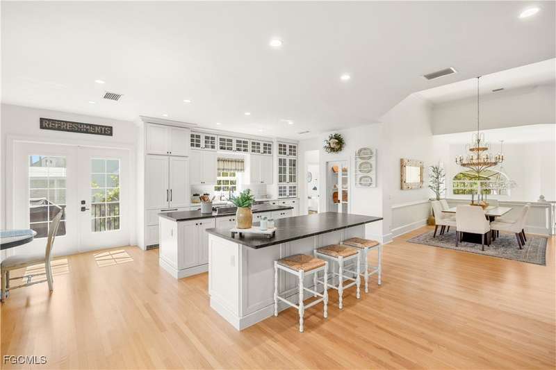 Experience the ultimate blend of luxury and coastal charm in the exclusive gated community known as Kinzie Island, an island within an island on Sanibel Island, where unmatched amenities and a welcoming atmosphere create the perfect island retreat. This highly elevated 4-bedroom, 3.5-bath home is located on Sanibel's convenient east end just steps to white sand beaches and a short bike ride to the Historical Sanibel Lighthouse. This light-filled retreat boasts soaring ceilings, impact windows and doors, newer roof and an open-concept design that maximizes space and natural light. As you enter the home you are suddenly moved by a a beautiful foyer and the huge greatroom area. The chef's kitchen is a show stopper with double islands featuring leather granite and quartz counter tops, a gas range, a farmhouse sink, and a walk-in pantry.- The spacious VIP suite is a sanctuary with a beautiful bath, double vanities, a soaking tub, and a extra large walk-in closet. The separete guest suites are generous and private. The quality to detail, real oak flooring, decorative tile floors, incrediable lighting, beautiful fixtures, are all amazing. Outside you will relax and enjoy a beautiful private pool area, incredaiable out door deck space a, and more. The home also features a 3-car garage and abundant storage. Kinzie Island is like no other! The Community amenities are unparalleled, featuring private boat dockage, deeded beach access, Beachside private facilities and storage lockers, a fitness room, Community pool with facilities, pickleball and tennis courts, bocce, shuffleboard, and a dog park. This is a fantastic lifestyle enjoyed by only 22 private residences. Kinzie Island, an island within an island on Sanibel Island.