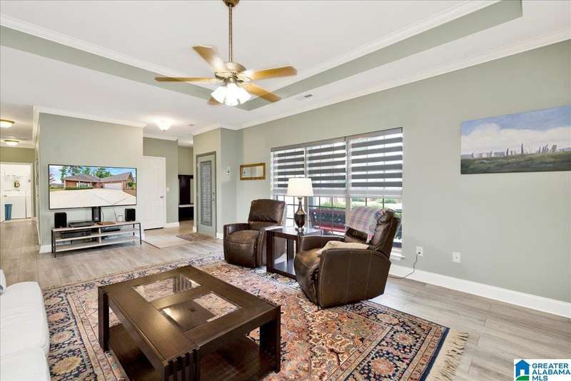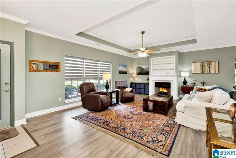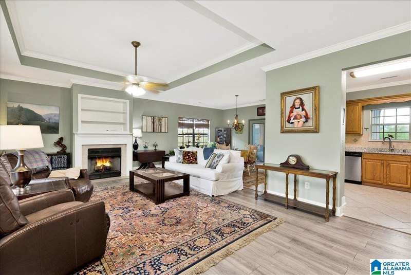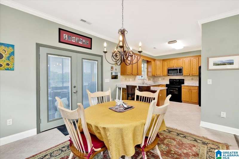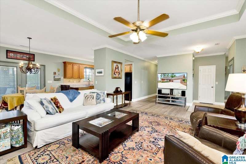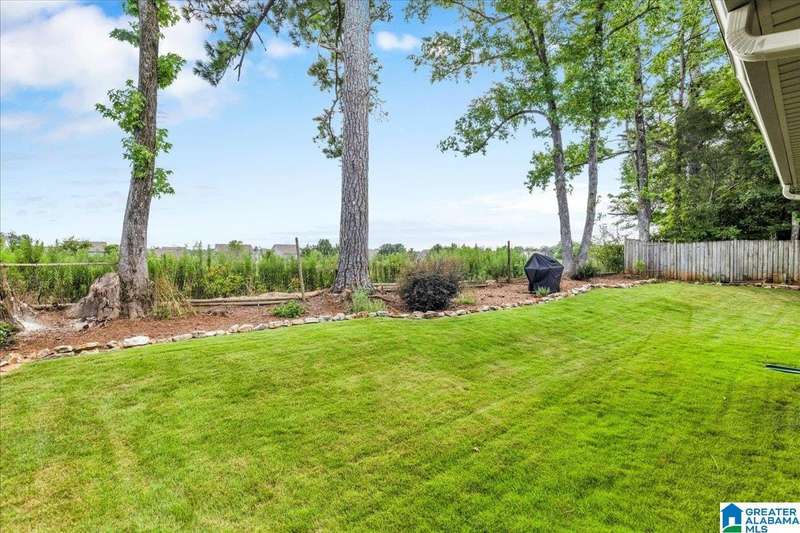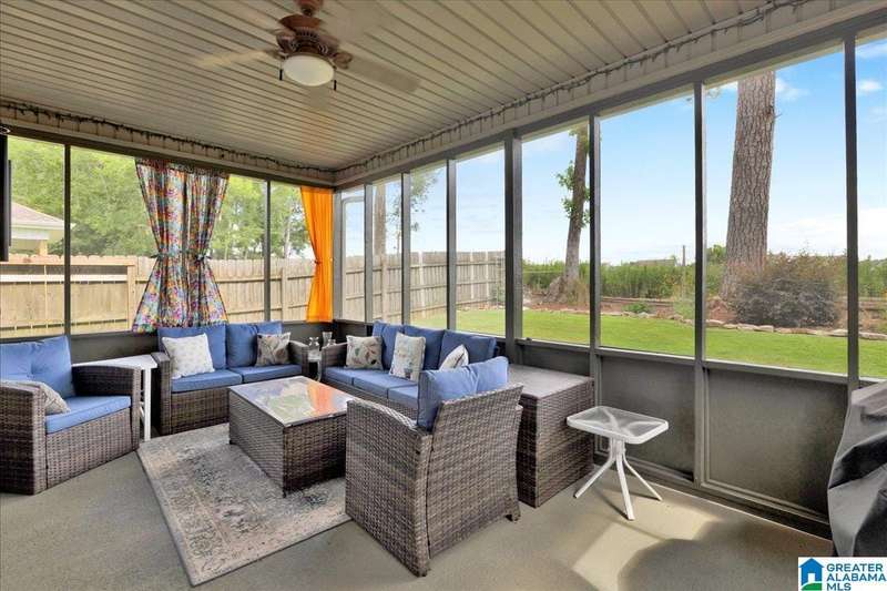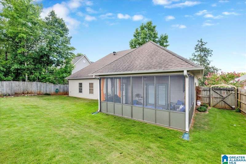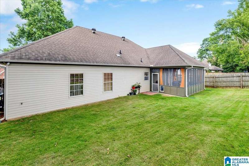 Great functional floor plan! Spacious, open living room & dining room featuring high, trey ceiling with crown molding & vinyl flooring. Marble faced, gas fireplace with decorative bookshelf above the fireplace. Lots of large windows and natural lighting. Kitchen with tall cabinetry, solid countertop, built in microwave, dishwasher, electric stove/oven, pantry & tile floors. Kitchen window overlooks back yard. Owner's suite features spacious walk in closet, raised vanity with granite, large separate shower and garden tub. Two secondary bedrooms are good sized with good closet space. Hall bath with vanity and tub shower combo. Mud room is off of the foyer area leading to the bonus stairs and entry into the garage. Cabinet storage in the garage. Large bonus room above the garage with access to walk-in attic area. Gracious screened porch off of the french doors in the dining room. Fenced in yard with natural lanscapped back property line. Great home!