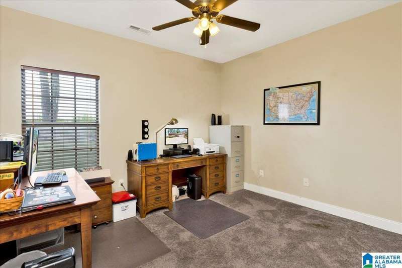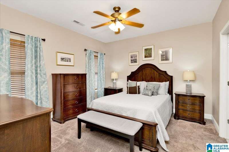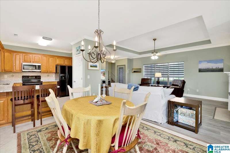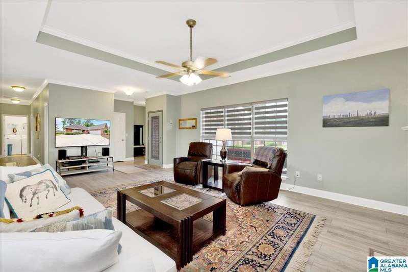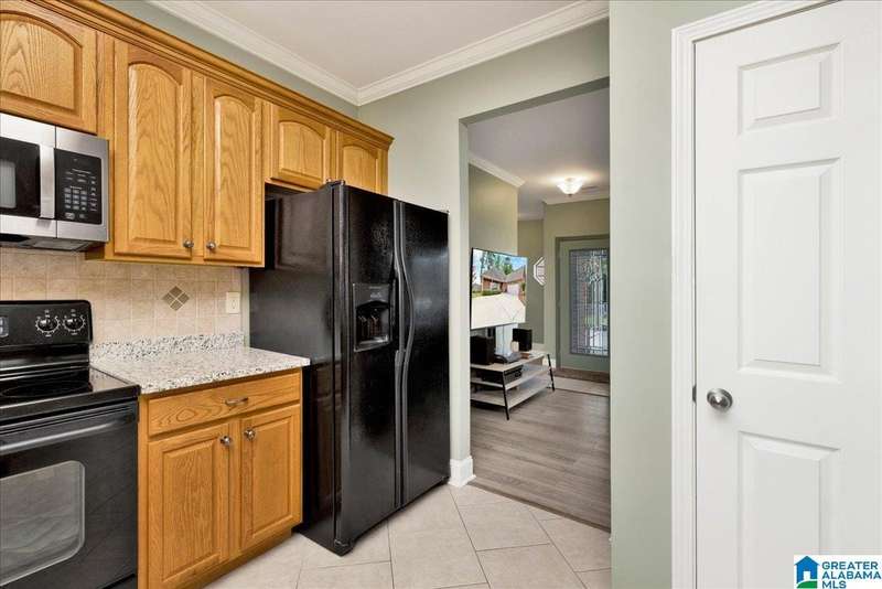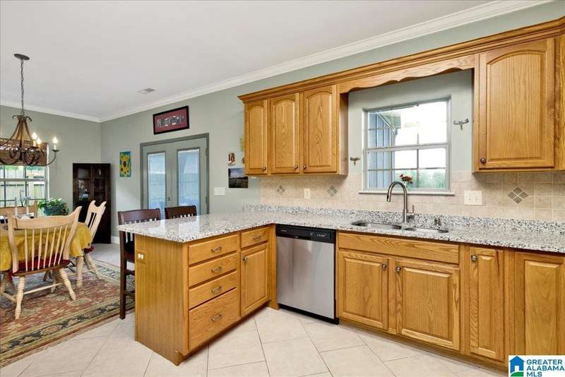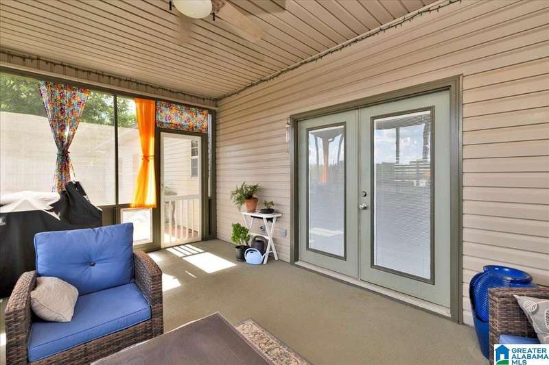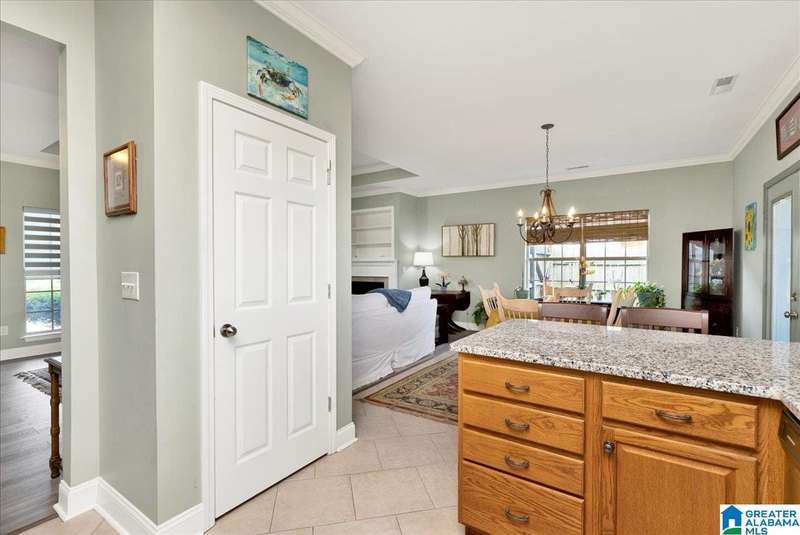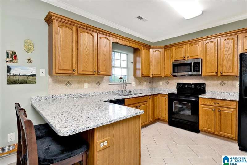 Great functional floor plan! Spacious, open living room & dining room featuring high, trey ceiling with crown molding & vinyl flooring. Marble faced, gas fireplace with decorative bookshelf above the fireplace. Lots of large windows and natural lighting. Kitchen with tall cabinetry, solid countertop, built in microwave, dishwasher, electric stove/oven, pantry & tile floors. Kitchen window overlooks back yard. Owner's suite features spacious walk in closet, raised vanity with granite, large separate shower and garden tub. Two secondary bedrooms are good sized with good closet space. Hall bath with vanity and tub shower combo. Mud room is off of the foyer area leading to the bonus stairs and entry into the garage. Cabinet storage in the garage. Large bonus room above the garage with access to walk-in attic area. Gracious screened porch off of the french doors in the dining room. Fenced in yard with natural lanscapped back property line. Great home!