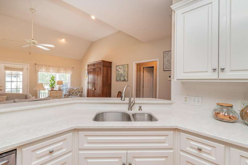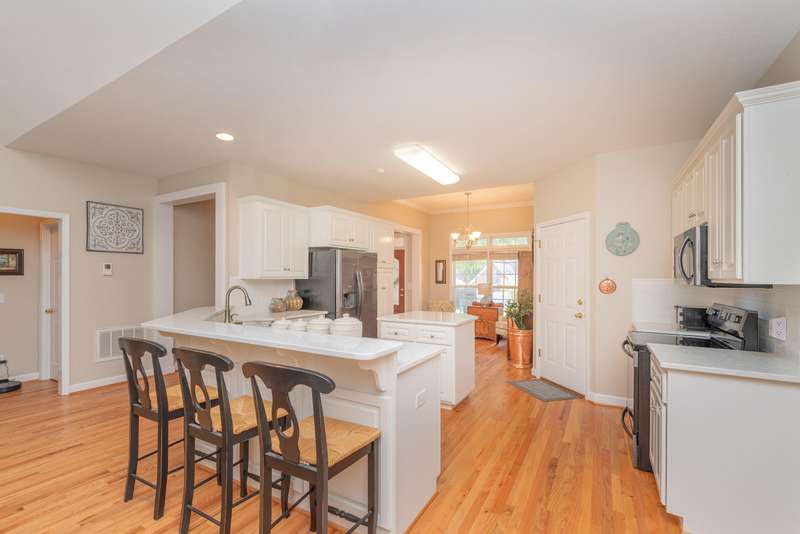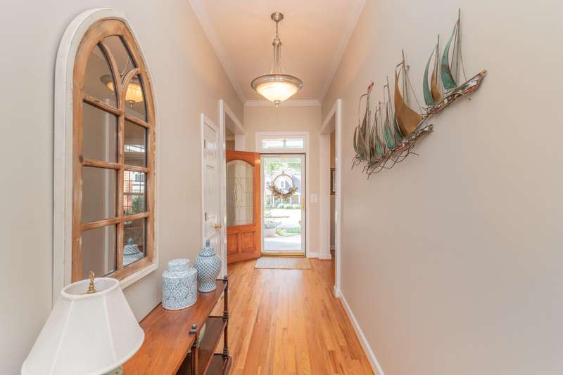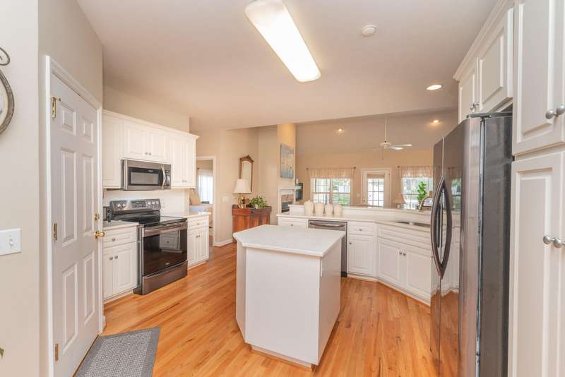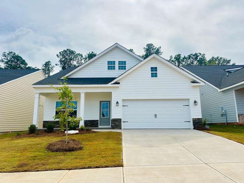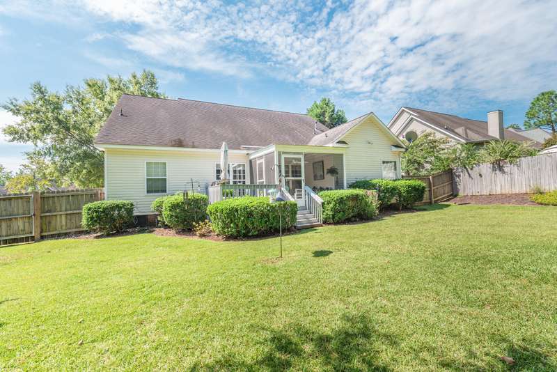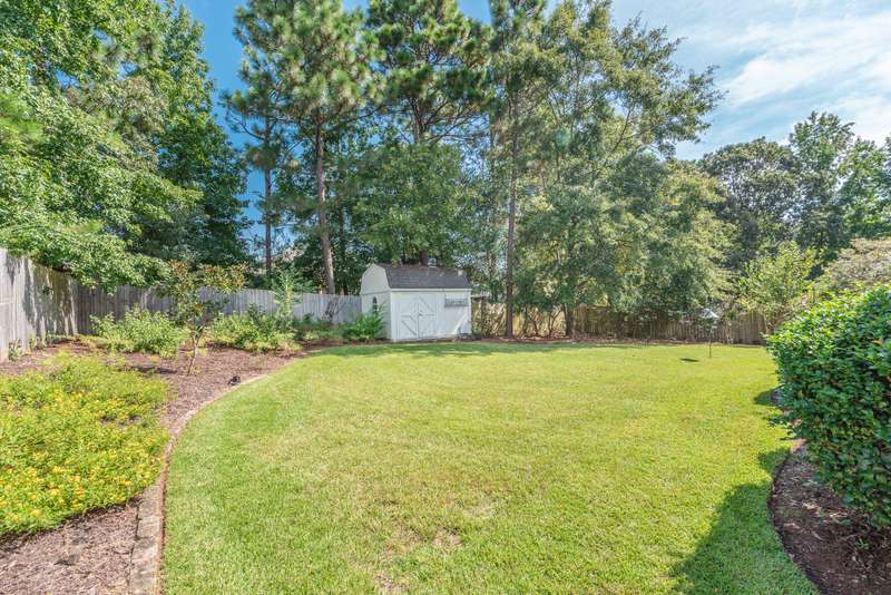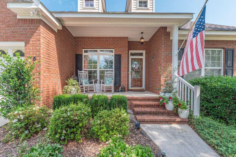 A spacious rocking-chair front porch invites you in, leading to a wide, welcoming foyer with tall ceilings that create an open and elegant first impression. Just off the foyer is a formal dining room, perfect for gatherings and special occasions. The custom kitchen features an island that adds to the abundant amount of counterspace, beautiful quartz countertops and a snack bar great for extra seating and opens seamlessly to the great room, with soaring ceilings and a custom fireplace creates the perfect gathering space for everyday family living. The owner's suite boasts a spacious walk-in closet and double doors leading to a luxurious bathroom with a soaking tub and separate shower, a true retreat. This home has two additional bedrooms on the opposite side of the house with a shared bath, offering a desirable split floor plan. Additional features include a large laundry room, amazing hardwood flooring, ample storage, 2 car garage and a screened-in back porch and grilling deck overlooking well-manicured fenced in backyard complete with a storage shed, perfect space for outdoor living and entertaining. Located in South Meadows, a peaceful, well-maintained neighborhood offering a community swimming pool, park, and more, this home exudes Southern charm from the moment you arrive.