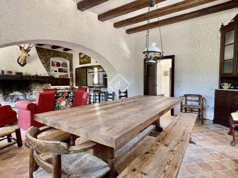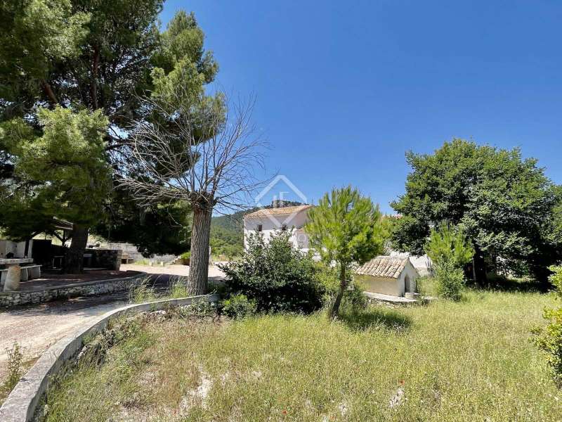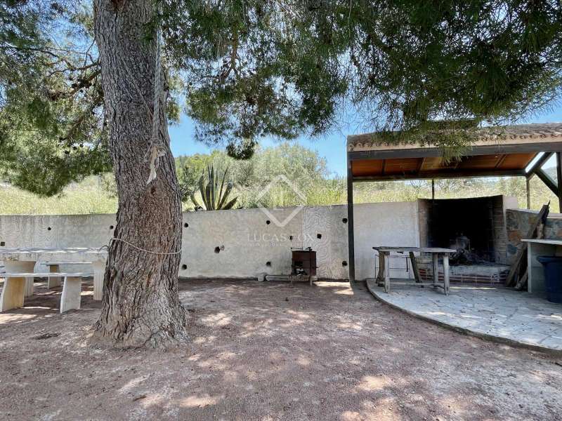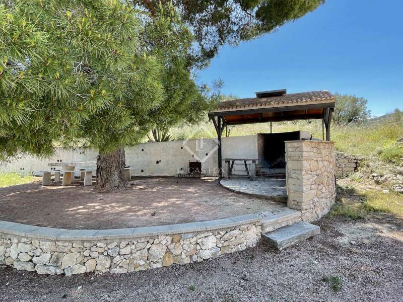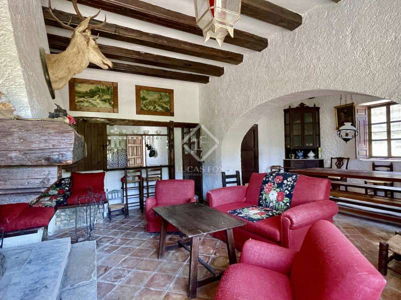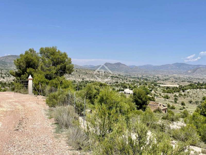 La Zafra, a unique hunting estate with 150 years of history, located on the plot of 372 hectares including Sierra de las Pedrizas. The property is unique for its privacy and wild nature, there are various trekking roots on the mountains, one of the peaks offers a 360-degree panoramic view of the towns bordering the province of Alicante, and from the top of the mountain you can see the Mediterranean Sea. The areas of the estate are home to various types of vegetation like pine, olive, almond trees and Mediterranean aromatic plants. The land is classified as protected undeveloped land. There are 2 shares of water from the Percamp irrigation community, which they estimate at 400 cubic metres per year, but which is expandable. Currently, it is a private hunting reserve, which is part of a large nature reserve with an area of 750 hectares. The reserve is also used for hunting small game. It has a spacious manor house in the centre of an estate with an area of 811 square metres. This place is ideal for those who want to find themselves in a private space surrounded by landscapes and open spaces. Here, your imagination can run wild to create a country hotel, stables, a mini winery with grape harvests of Moscatel, or any other leisure activity for a healthy lifestyle. The homestead's tiled roof has recently been renovated for proper maintenance. It has a masonry load-bearing wall structure that gives it stability, and the floors are made of renewed wooden beams. The interior is made in a rustic style, using natural materials such as wood and stone. The main house has various renovation opportunities depending on future plans for this property. Currently, the building of 2 floors is closed rectangular shape with a courtyard in the middle and is divided into 2 continuous spaces, communicating with each other on both floors. The living part of which has 7 bedrooms, 3 bathrooms, 2 kitchens, 1 spacious hunting-style living room with fireplace and a staircase that connects the 2 floors. The second part of the house is currently not used, offering the opportunity to create a space out of it at your discretion. This truly unique property is perfect for someone who is looking a getaway place with total privacy surrounded by virgin nature ad mountains just 30 km away from Alicante. This region is famous for Moscatel grapes ad almond fields. Please contact us for more information or to visit the property.
