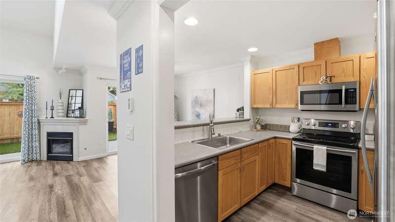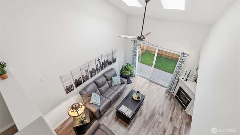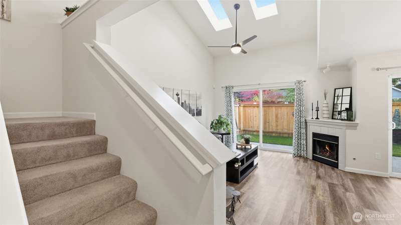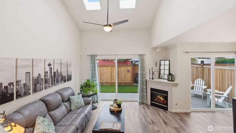 Discover this radiant 3-bedroom, 2.5-bath gem nestled in the heart of Silver Lake! Brimming w/ warmth & contemporary charm, this home features soaring ceilings, skylights & a spacious open-concept layout—perfect for entertaining or relaxing. STEP OUTSIDE TO A RARE, FULLY FENCED PRIVATE BACKYARD OASIS complete w/ turf & a covered awning. Upstairs relax in the primary suite w/vaulted ceilings, generous closet space & an en-suite bath. Two additional bedrooms & a full bath, round out the upper level. The home also includes a fully finished, attached one-car garage plus an additional covered parking space & an in-unit washer & dryer. Minutes from Costco, I-5, & Silver Lake, this stylish & low-maintenance property is a rare find. No rental cap.