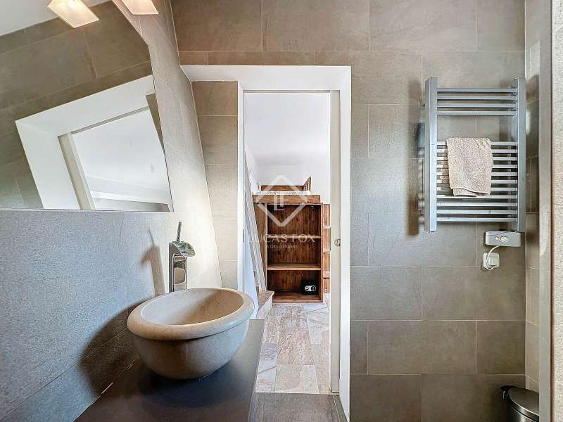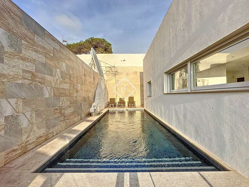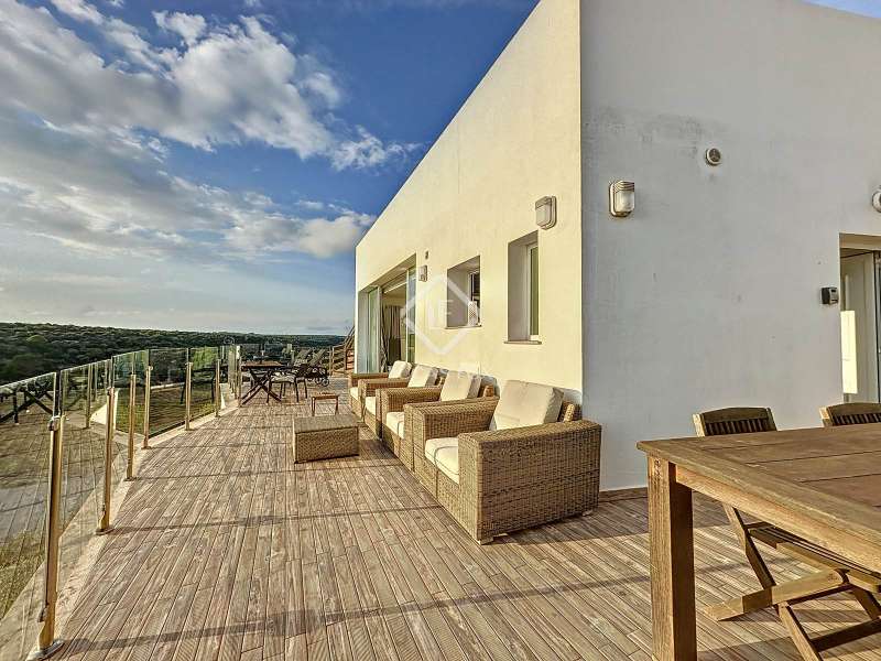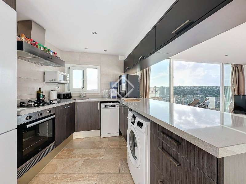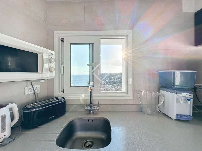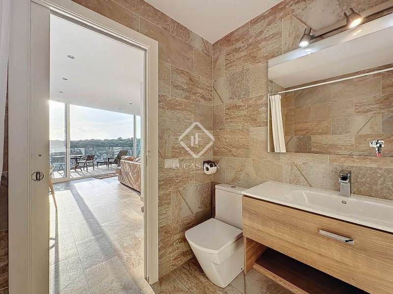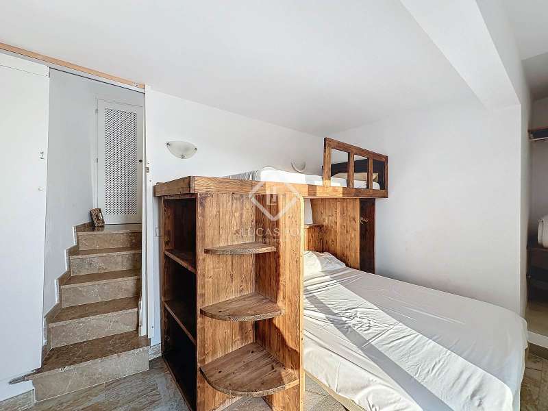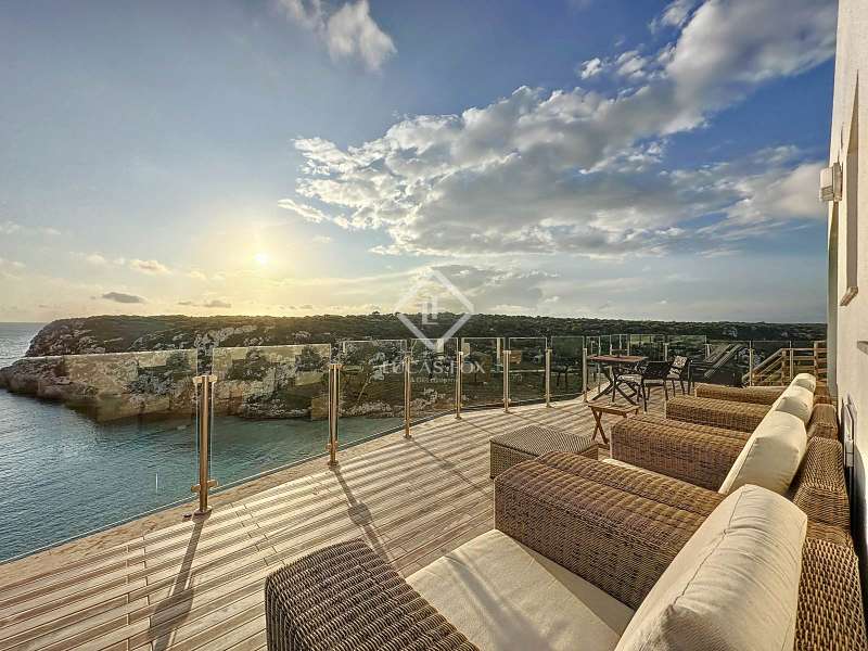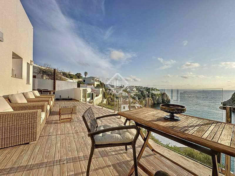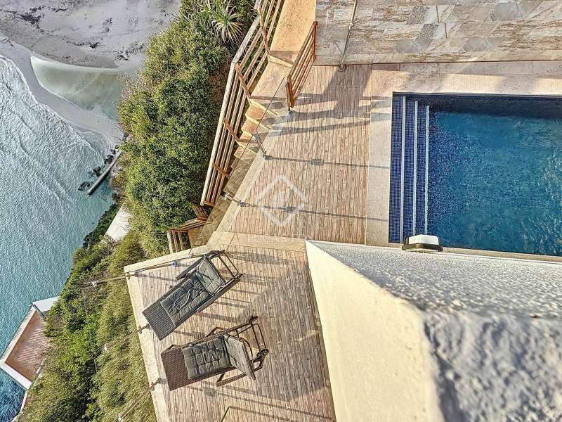 Lucas Fox presents this impressive 69 m² villa , with a modern design, located on a 313 m² plot in Cala'n Porter, within the municipality of Alaior. The property, built on the ravine, is located at a height that offers spectacular views. The property, built in 2015 and recently renovated, is in impeccable condition and ready to move into. It is distributed over three floor. Going down from the street, we access a main terrace located on a lower level. From here, the 180º panoramic views towards the beach and the Cala'n Porter ravine are simply stunning. Upon entering the house, we find a spacious and bright living-dining room integrated with the fully equipped American-style kitchen. On this same level, there are two cozy bedrooms: both with a double bed and a single bunk bed, which can comfortably accommodate up to six people. In addition, the shared bathroom with a bathtub has been renovated with modern materials, maintaining a high quality standard. Going out onto the terrace, we come to a modern rectangular swimming pool, which also enjoys spectacular views. From here, a curious wooden staircase leads us to a lower floor in the process of renovation, where we find a complete bedroom with a double bed and a single bed and a curious complete bathroom with a shower. In addition, there is another room in the process of renovation that could be converted into a fourth bedroom. On the upper floor , at street level, we have a large solarium that has the same surface area as the lower level, ideal for enjoying the sun and the views. Among the outstanding facilities of the property are cold/hot air conditioning splits, fireplace, ceiling fans and exterior enclosures with double glazing. One of the most distinctive elements of the villa is the transparent glass railing that surrounds the terrace. This detail allows you to enjoy an unobstructed view of the surroundings: the beach, the sea, the natural park and the Cala'n Porter ravine. A unique and elegant property, with exceptional details that make it an ideal place to live all year round or enjoy unforgettable stays with family and/or friends. Please contact us for more information or to arrange a visit.