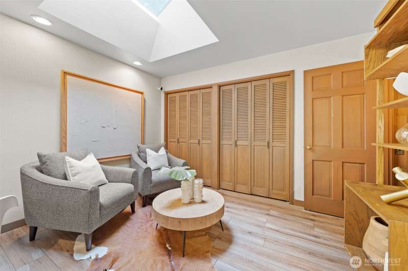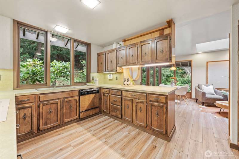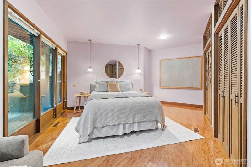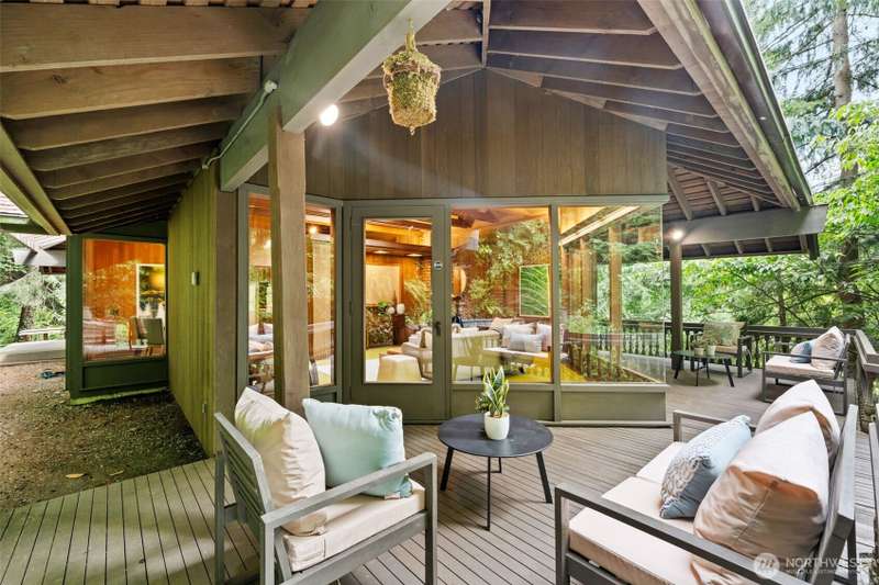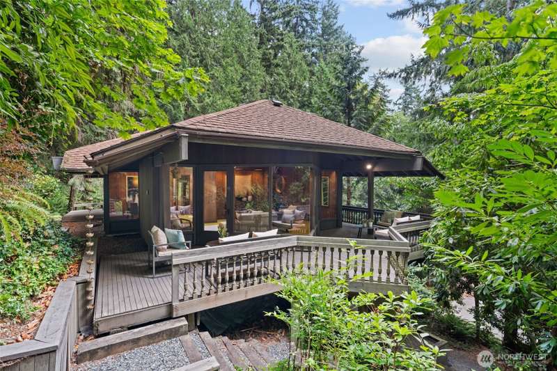 A Mid-Century Retreat designed by Ralph Anderson. Nestled in a serene setting, this Pacific NW Contemporary blends architectural distinction with the warmth of clear cedar finishes both inside & out! Expansive windows, skylights, & vaulted ceilings fill the interiors with natural light. The upper level showcases the kitchen, dining, living, & family rooms, all with seamless flow to expansive decks & patios. The lower level provided you with the private Primary Suite, featuring a wood-burning fireplace & patio, as well as the additional bedrooms. Mature landscaping encompasses the covered entry, setting the tone for this exceptional residence. Peacefully tucked away from the city, yet close to all the island’s many amenities. You'll love it!