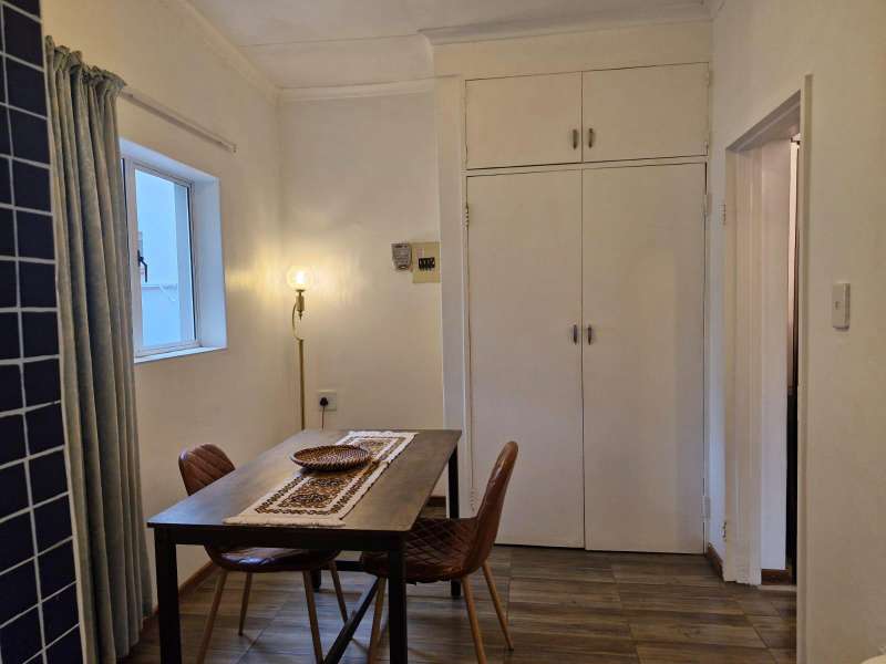 FULLY FURNISHED GARDEN COTTAGE in secure GROENKLOOF ESTATE Spacious one-bedroom cottage with a double bed and en-suite bathroom. (shower, toilet and basin) Additional dining area that can be used as a second bedroom or study. Comfortable living area and well-equipped kitchen with a two-plate stove and washing machine. Private courtyard for added outdoor space. One covered carport. Pre paid electricity Water and Wi-fi included in the rental. NO children or animals allowed Situated in the secure and sought-after Groenkloof Estate. Walking distance Virgin Active, Groen kloof Spar & shops, LCM Hospital, SABS offices and R21.