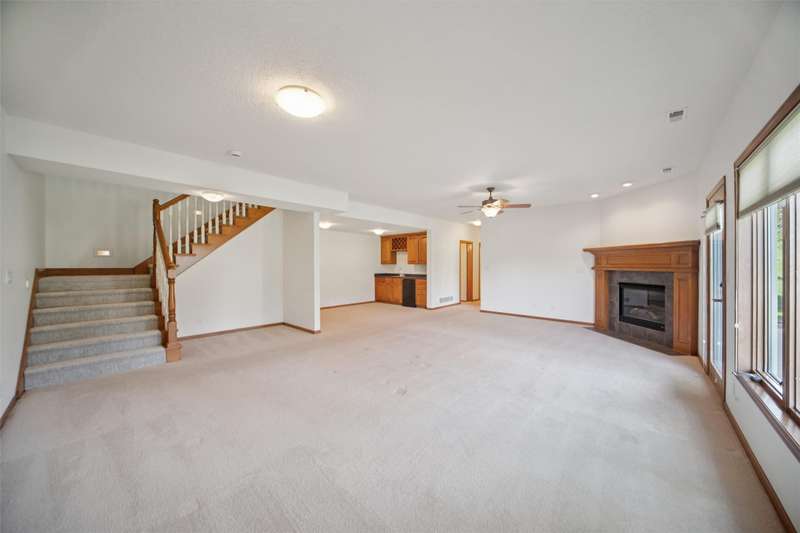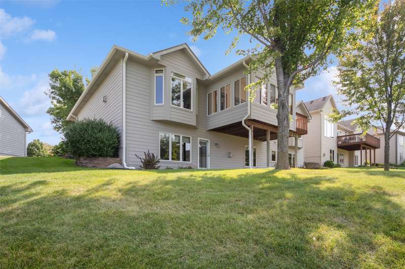 Rare Find! Location, Location, Location Spacious ranch style home with townhouse amenities, walkout lower level and a view of the pond. This home is located in Urbandales Hallbrook neighborhood. Main floor primary bedroom and 2 additional bedrooms located in walkout lower level. Over 3,300 sq. ft. of living space. Beautiful view of pond from the three season sunroom. The HOA maintains the lawn care, snow removal and master irrigation system. Located on a low traffic street. You will enjoy living close to shopping, churches, restaurants and walking trails. The home features a den with French doors and built-ins, spacious kitchen, formal dining room plus a dining area off kitchen that leads to the three season sunroom. The great room has a fireplace and built-in bookshelves. The walkout lower level has a 2nd family room with fireplace, wet bar, 2 bedrooms, jack & jill bath 3/4 bath plusanother half bath. This home is located in the Waukee School District. Exceptional Value!!