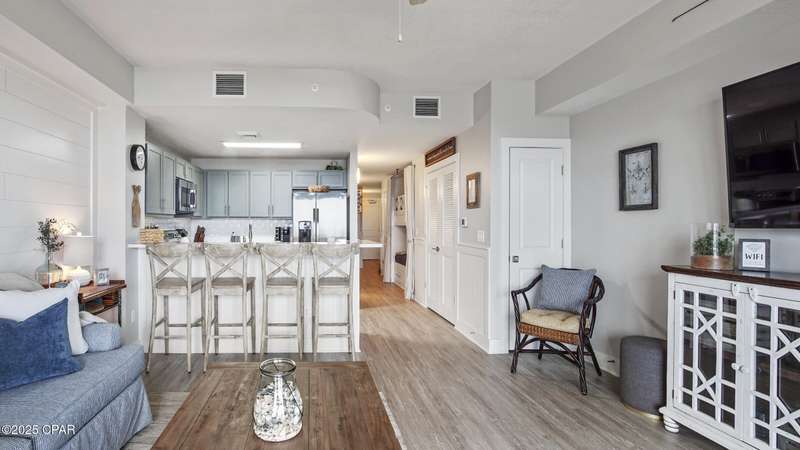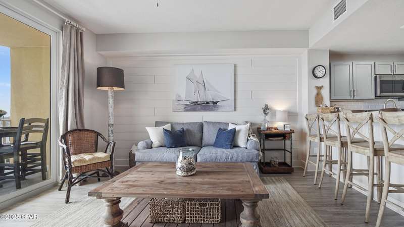 Calypso III Lifestyle is Coastal Bliss at its Finest!Built in 2020, the newest condominium on the beach, Unit 605 is located on the 6th floor of Tower 3 and it brings bright, beachy elegance to everyday life. This spacious one-bedroom condo--with a charming bunk alcove tucked into the hallway--is all about laid-back coastal comfort.Walk into a sunny, open-living layout where the kitchen flows seamlessly into the living area, inviting you to relax and soak in sweeping, unobstructed views of the Gulf. Step out for morning coffee or evening cocktails on the oversized balcony--it's your frontrow seat to spectacular sunrises and serene sea breezes.Designed with coastal-inspired furniture and shiplap-accented walls, this space has that breezy beach cottage feel. The kitchen shines with stainless-steel appliances and quartz countertops--perfect for casually whipping up gourmet snacks after a day by the waves.This lovely cozy condo at Tower III, is right in the heart of the action: steps from Pier Park's dining, shopping, and exciting attractions like the Pirates Voyage Dinner & Show and Topgolf.Whether you're searching for a dreamy retreat, a high-performing vacation rental, or a full-time coastal lifestyle, this Gulf-front gem is calling your name!