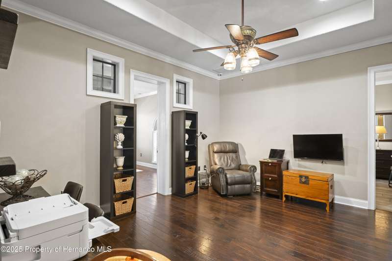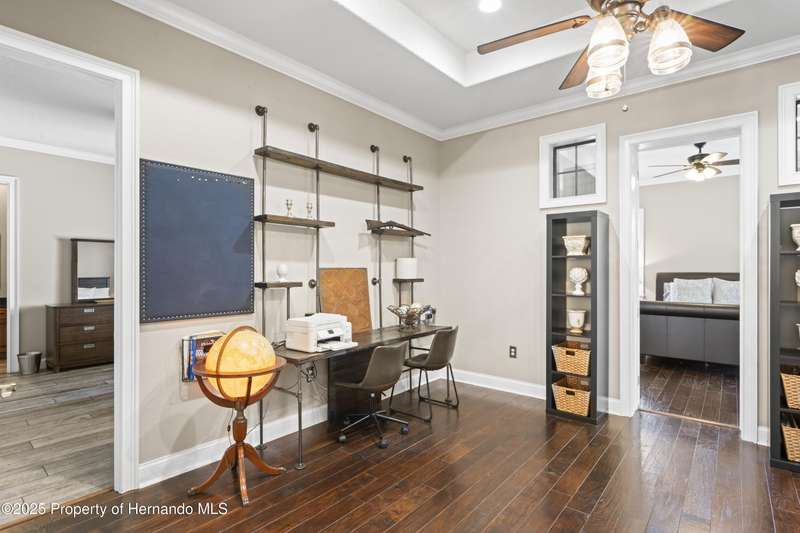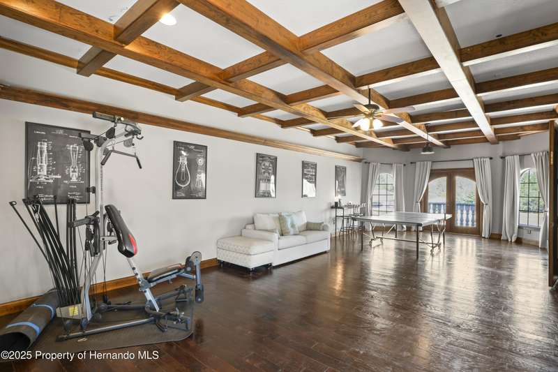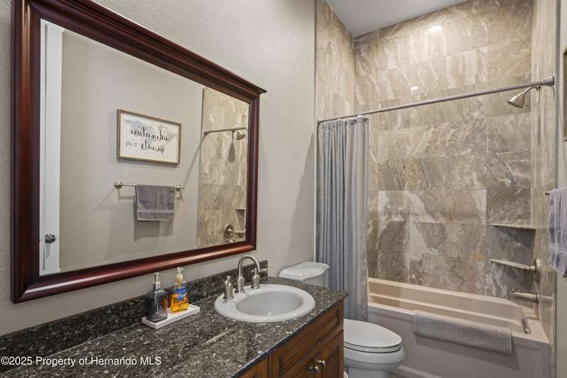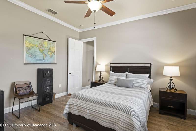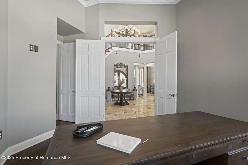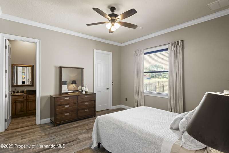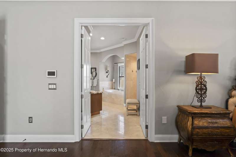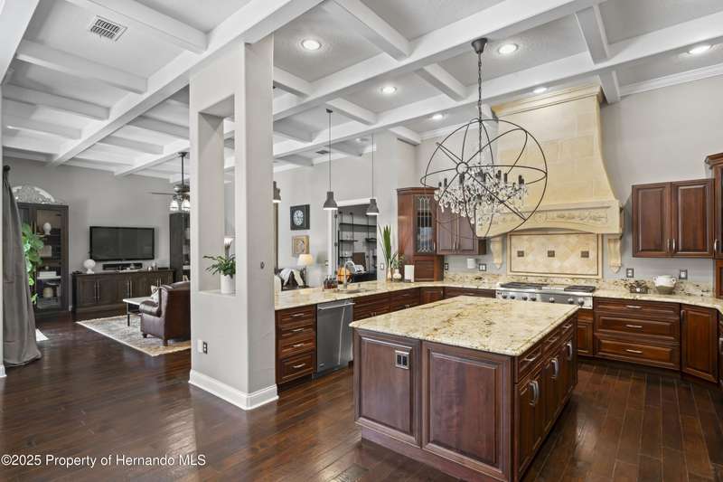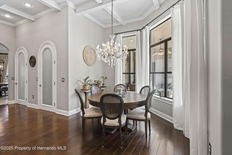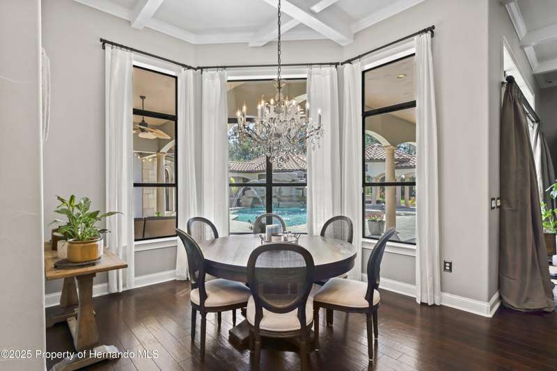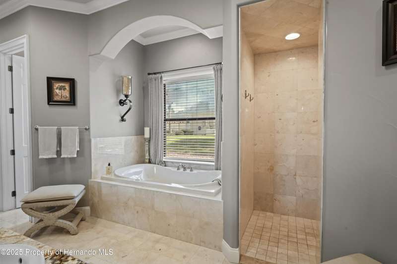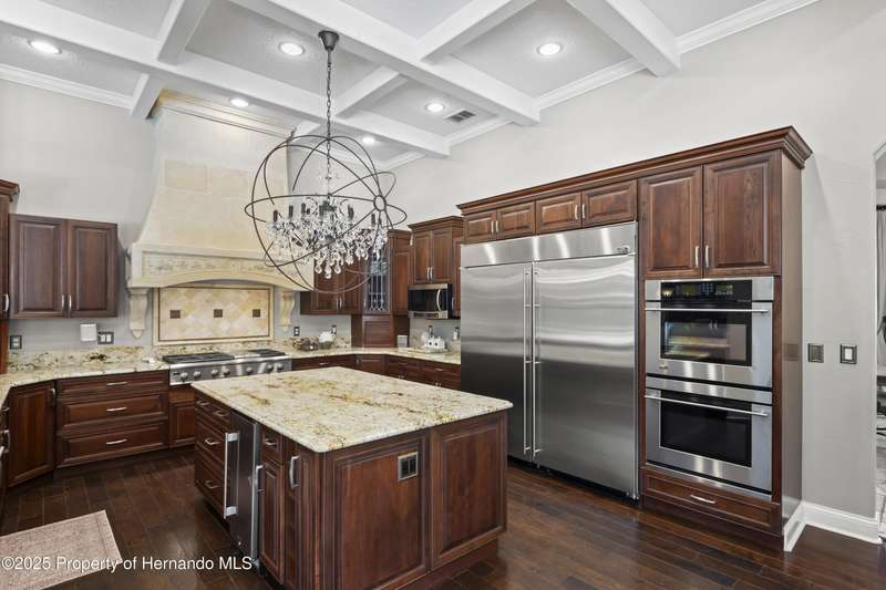 This Mediterranean inspired, resort-themed home sits on a quiet street in Woodland Waters, an exclusive subdivision of estate sized parcels. With over one acre of manicured grounds this property is the ultimate residence if you are looking for perfection and privacy. The architect, builder and designer created a residence that blends natural light, soaring ceilings with exquisite architectural details in a manner that is grand in stature but at the same time, warm and inviting. The residence encompasses 6266 sf. of heated/AC space with 4000+ of outdoor entertainment space. The interior is bespoke with an array of cabinetry, top-grade sourced granite, imported marbles and tile, fine hardwoods and plastering. The Property includes a pool house/guest house with high ceilings, a full bath and kitchenette. Architectural details in the main residence feature soaring ceilings, hand scraped wood floors, a chef's kitchen with 6 burner gas stove and a 72'' refrigerator/freezer, walk in wine room, attached pantry and exquisite lighting. In the living room, both the windows and fireplace rise from the floor to the ceiling and are overlooked by a sitting room from the second story. There are four en suite bedrooms on the main floor, three connected with a gathering/office/work study area. Dine in either the striking dining room, the breakfast alcove or seated bar area. Numerous doors lead to the outdoor pavilion/pool area including from the family room, two from the primary bedroom and one from an additional bedroom bath. The upstairs sitting area leads to a Media/Rec room (or other creative use) with high beamed ceilings and a full bath, Juliet balcony, with covered outside patio area and spiral staircase. The backyard pavilion includes a resort-like heated pool with nighttime lighting, several fountains and waterfalls. Adjacent and under roof is an outdoor kitchen, dining space and fireplace with TV. The connecting guest suite encompasses 700+ sf and has a kitchenette, full bath and Clive Christian cabinetry. The suite can be used for entertaining as well as sleeping. Each of two oversized garages can hold 3 cars on PVC commercial grade flooring (6+ vehicles total) with one garage having a rear entrance. The backyard of the property is totally fenced and landscaped for privacy. A 12 zone irrigation system utilizes well water covering lawn/gardens. Special in wall insulation,4 zone HVAC, central vacuum, landscape lighting and many recent utility and appliance upgrades. Home also features UV water filters and double tankless water heaters. Sitting high on a rolling hill and safely inland (low insurance and no flood requirement) this home is less than 10 mi. to Weeki Wachee Spring State Park, Pine Island and Hernando Beach. Tampa International Airport is only 51 minutes away and every shopping convenience is nearby. If you enjoy living in quiet privacy, security and beautiful surroundings this home is for you. The residence defines perfection. Walk around the low-maintenance yard and lava rock gardens, then take a nap in the hammock... before swimming in the large heated pool in total privacy with no neighbors' residences in sight...then change (or put on clothes) in the guest/pool house (using the second washer/dryer for towels) before returning to the main residence to relax in what may be the most Exquisite Living Experience in all of Hernando County. Showings with 12-24 hour notice to qualified buyers only. Call to schedule.