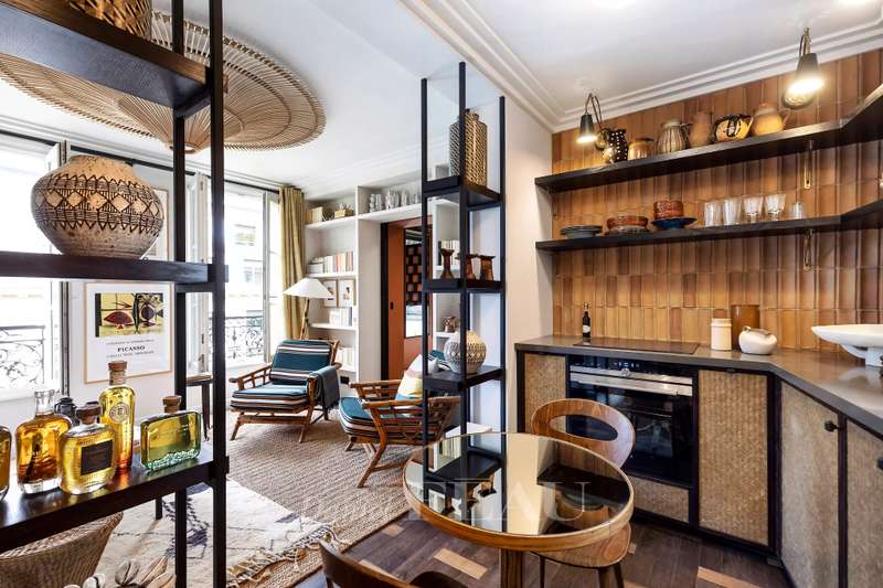 Matignon/ Percier neighbourhood. This elegant apartment on the 6th floor of a renovated mid 19th century building has been revamped by renowned interior decorator Hubert Zandberg. Sold fully furnished and equipped, it offers 43 sqm of living space as defined by the Carrez Law including a bright and beautifully appointed living/reception room, a fully equipped kitchen, a bedroom with fitted storage space, and a shower room.